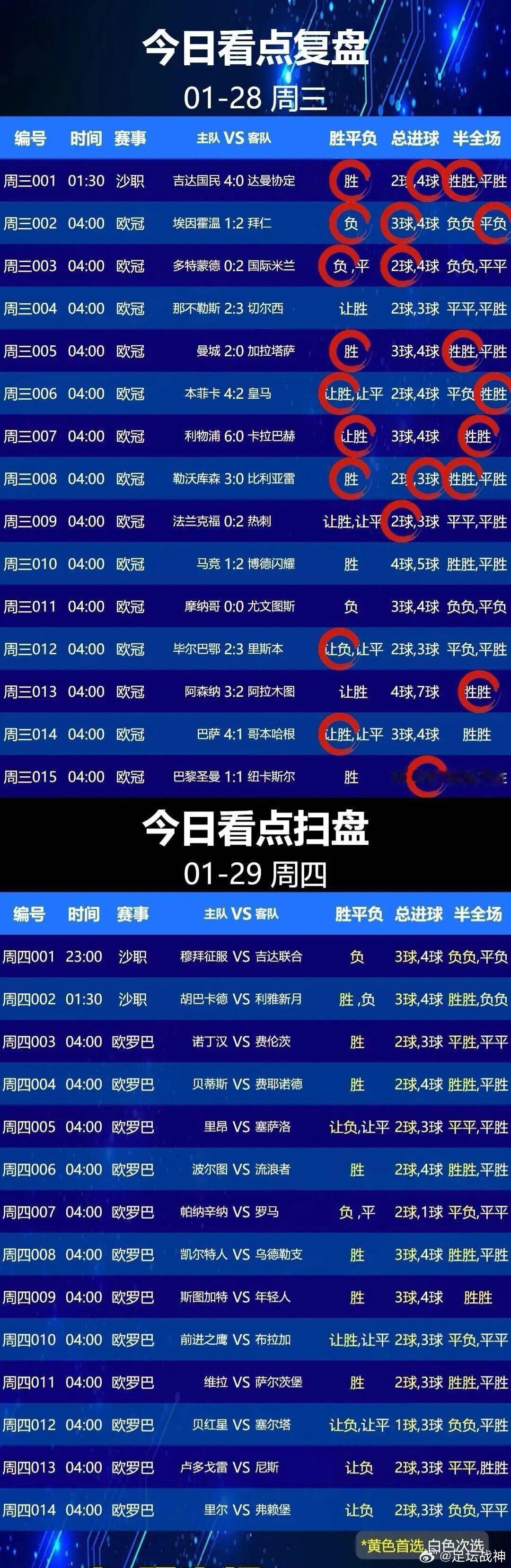 1月29日001 哈萨征服 VS 吉达联合002 卡迪西亚 VS 利雅得新月 003 诺丁汉森林 VS 费伦茨瓦罗斯004 皇家贝蒂斯 VS 费耶诺德005 里昂 VS PAOK 塞萨洛尼基006 波尔图 VS 格拉斯哥流浪者007 帕纳辛纳科斯 VS 罗马