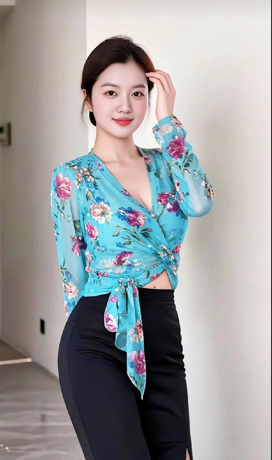 温柔蓝花衬衫,优雅气质满满!