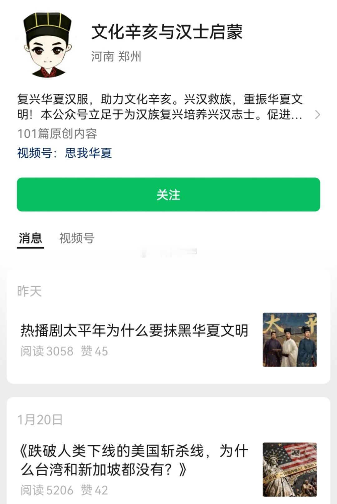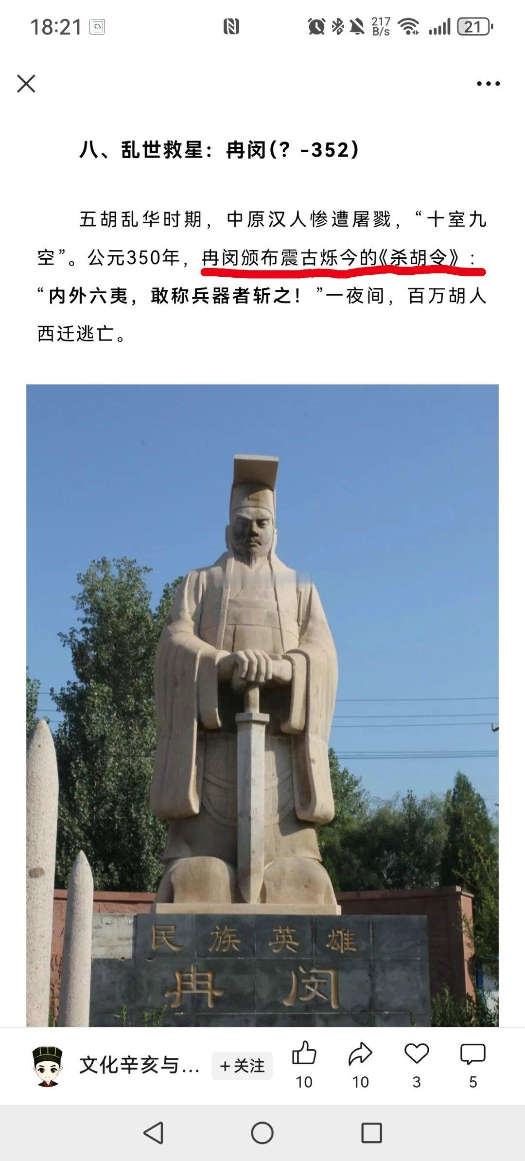 这个号有点厉害,对太平年哈气,说它没体现传统文化里的“仁义道德”。(你回五代说去吧)往下一翻,吹上4V和鼻屎那里没有斩杀线(吹谁不好吹4V)再往下翻造谣国歌的赫然在列,然后还吹上冉闵了。(冉闵现在基本没人吹了)果然是沃土啊……这个要素可太齐了~