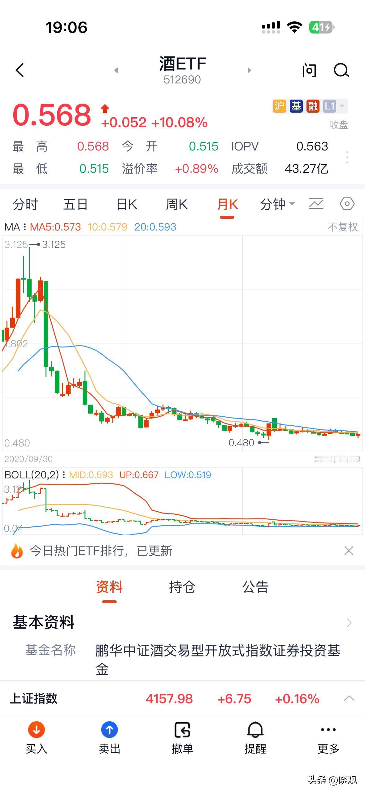 白酒ETF从2021年跌到现在,五年都没有抬头过,完全在山谷里游离。 今天来一个十厘米涨停,先干为敬! 明日以后,就不要踏马平川了,你平地飞升吧。 茅台毕竟是你的重仓,茅台毕竟是航天概念了!
