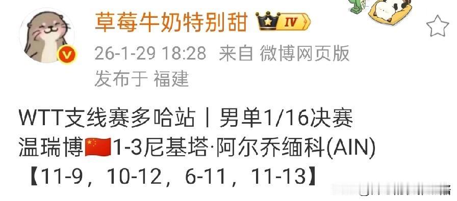 温瑞博又输了,小将还是不稳定。 看温瑞博腿好像受伤了,贴满了肌贴,小将连轴转也受不了。 都以为温瑞博一冠一亚,手很热会再拿一个冠军,没想到输给名不见经传的尼基塔,看来小将体能也是有限的,这样马不停蹄打比赛,除了受伤积分并没得多少。 温瑞博成绩就像过山车,夺冠后很多人都说可以取代林诗栋,没想到一个支线赛就翻车了。 如此看来亚洲杯没有温瑞博,也是团队很明智的选择,小温也该回来也好好休息了。 看来支线赛也不好打,但愿国乒能夺冠。 图片来自网络侵权可删。