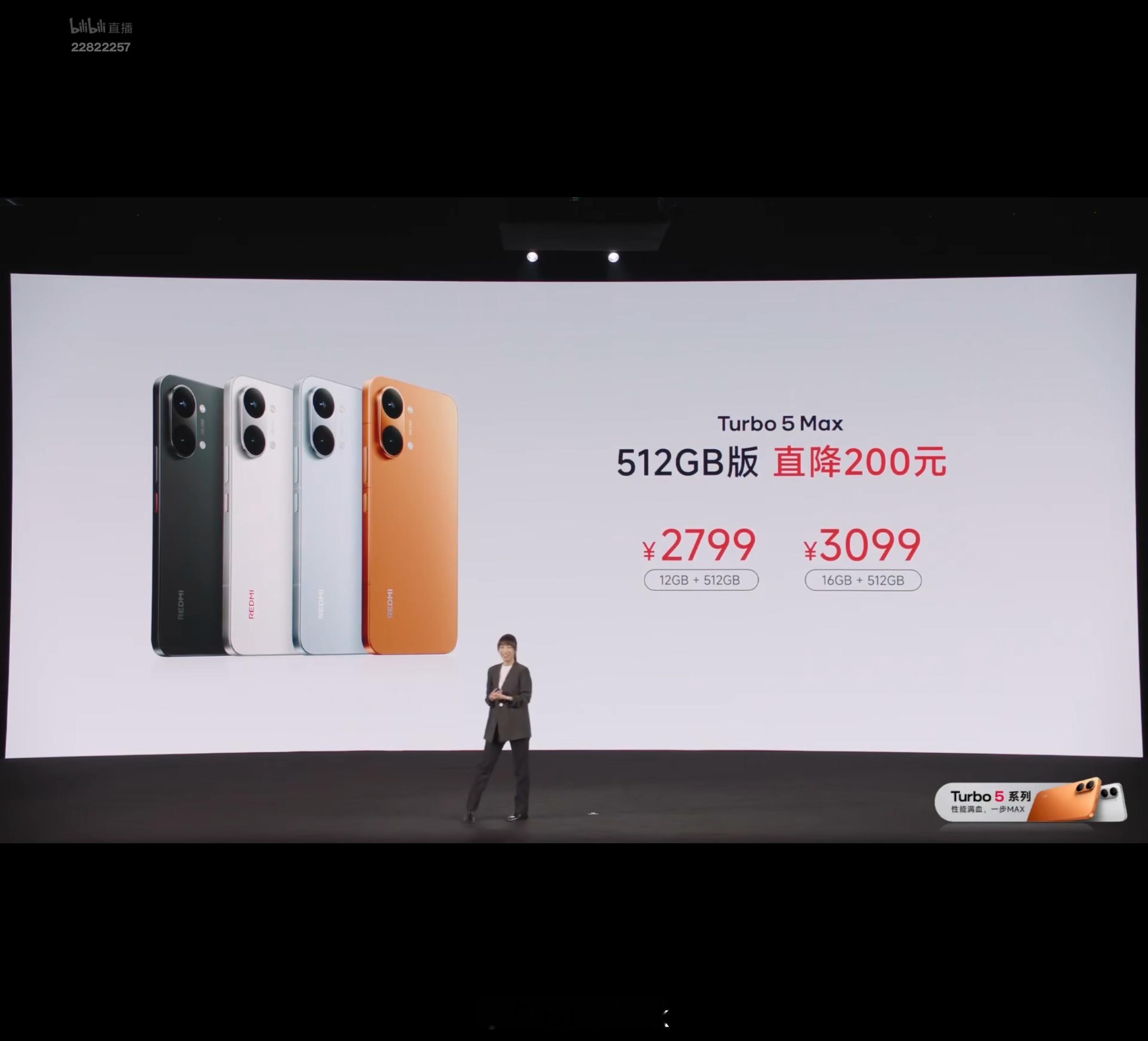 红米Turbo5发布会价格来啦,红米Turbo 5 Max 起售价2499,不对,大内存版本直降200!不对!还有惊喜,首销再降300??!!……直接2199起步!这价格无敌了 啊???????国补后到手价1869起?直接掀桌子了!!!