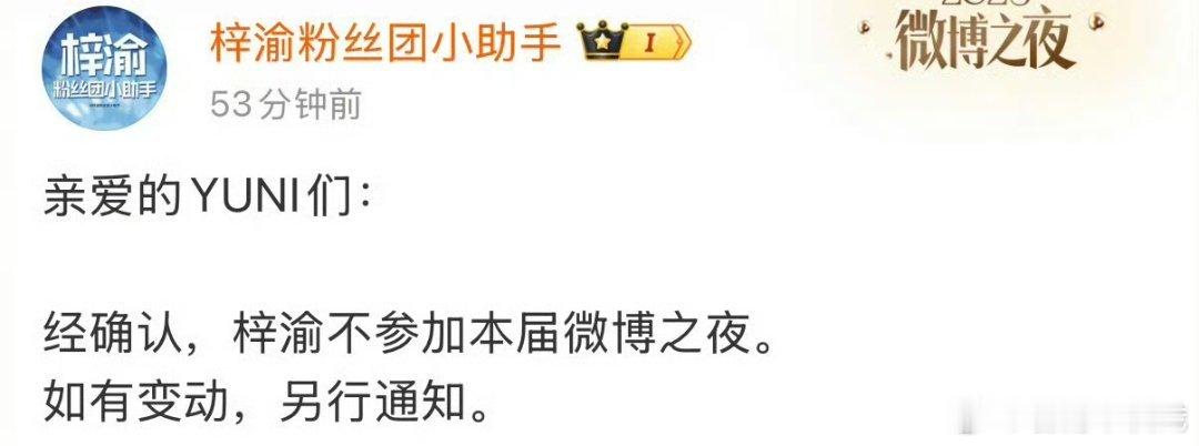 梓渝不参加本届微博之夜 ,好可惜不能看到梓渝红毯了