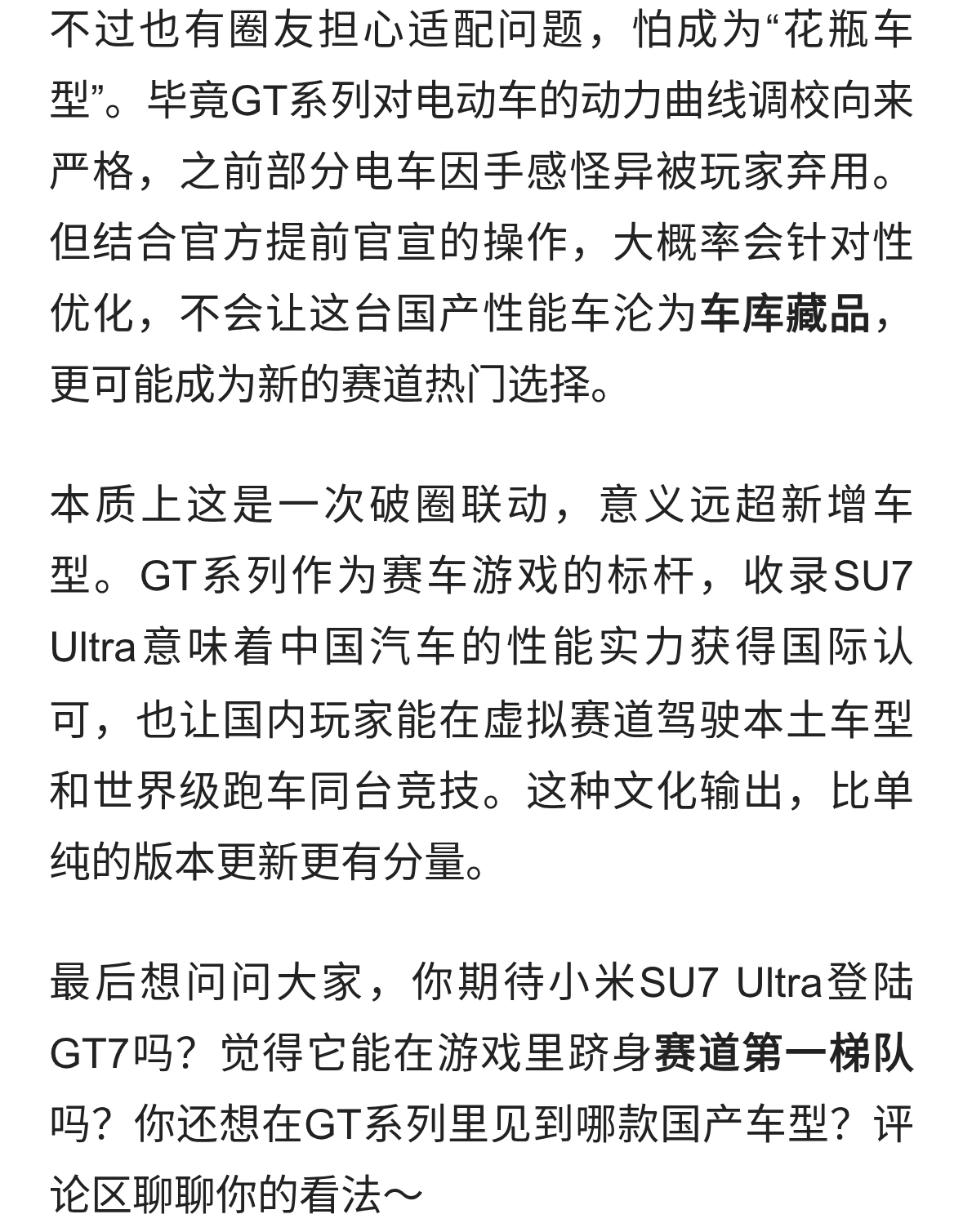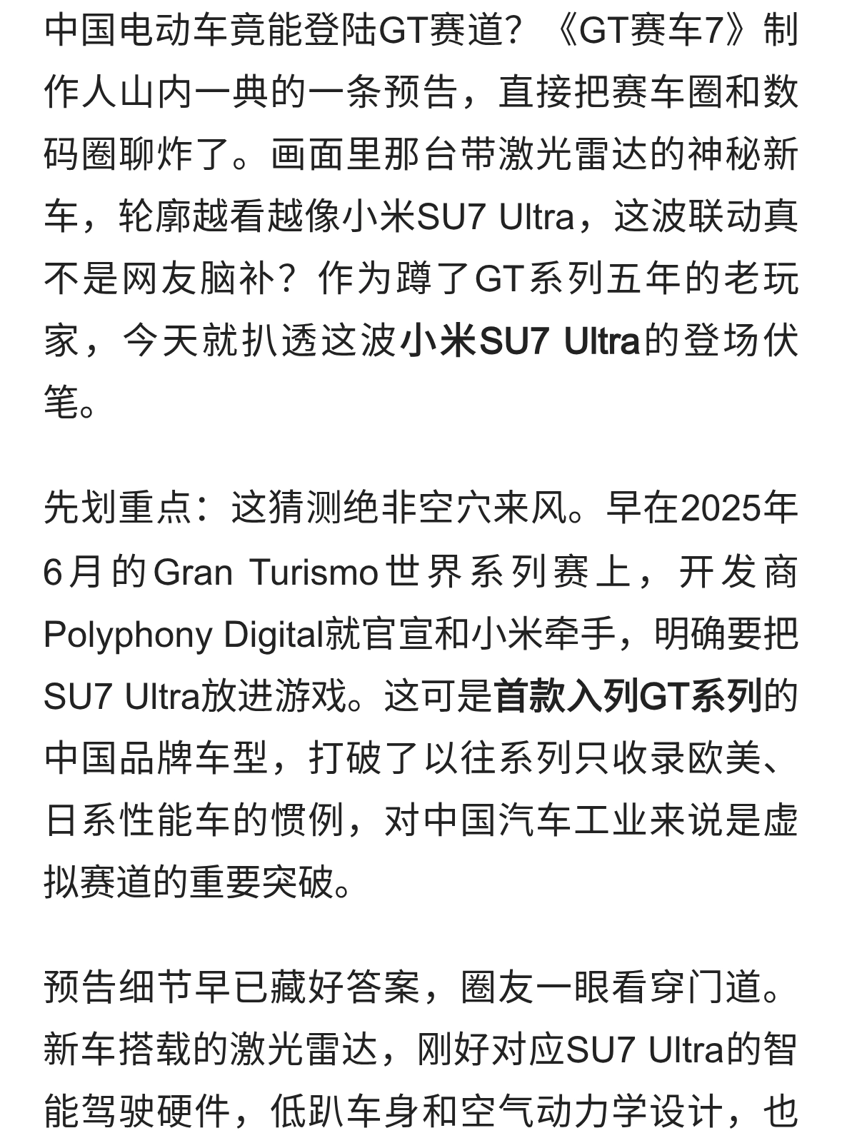 GT赛车7下周更新悬念:小米SU7Ultra稳了?