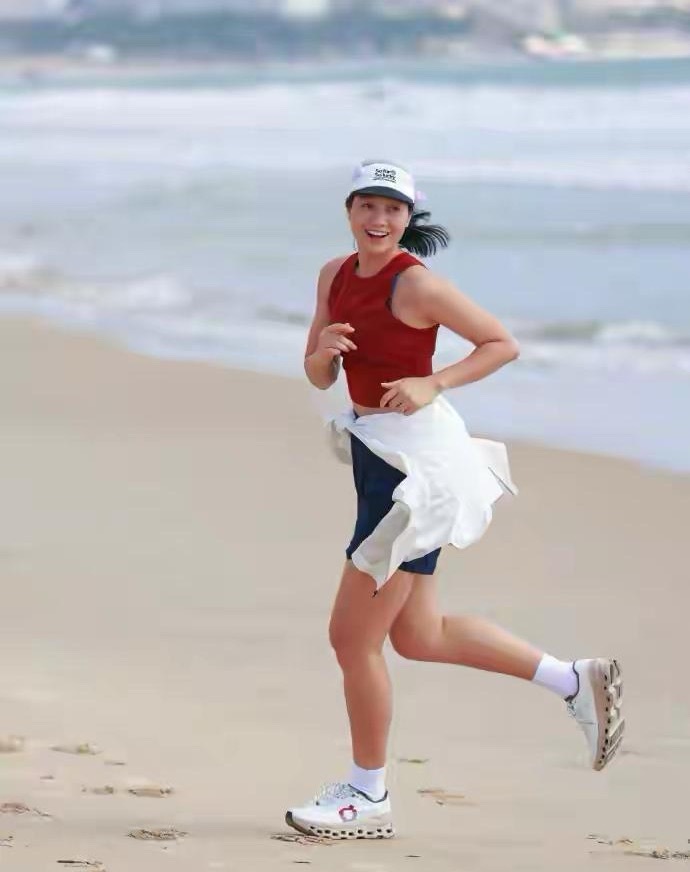 演员朱丹晨跑运动美拍,这肌肉真不错,状态真好,瞬间理解周一围了!
