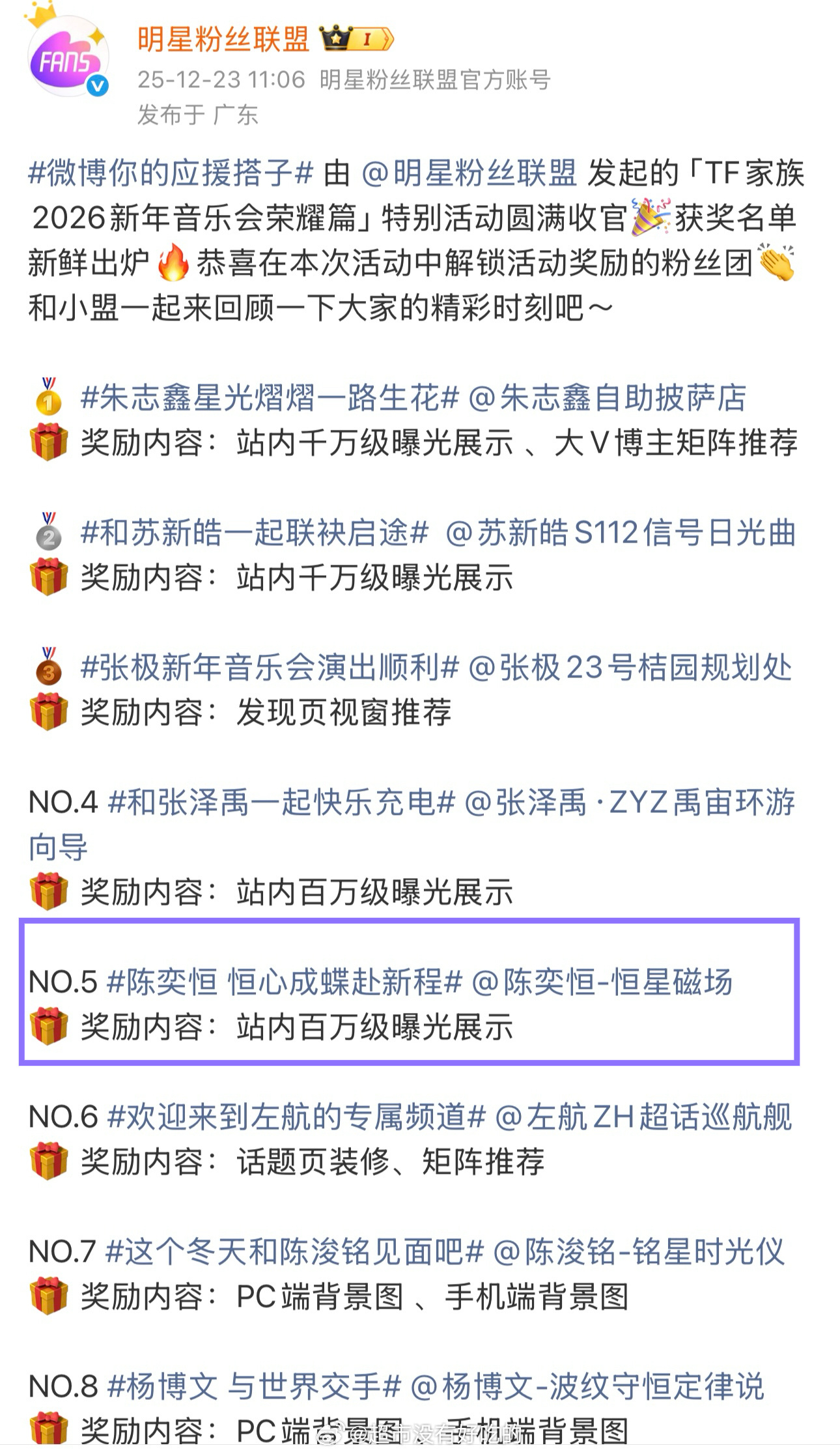 恭喜陈奕恒高会粉丝突破20w!