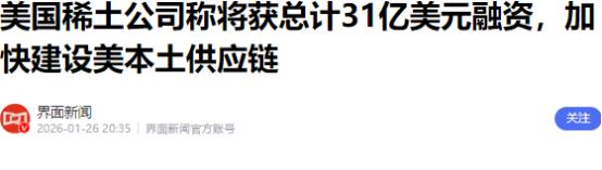 美国稀土公司宣布: 1月26日,美国稀土公司正式宣布与商务部签署意向书,获得16亿美元政府资金支持,包括2.77亿美元股权融资和13亿美元贷款,同时完成15亿美元私人融资。这笔钱主要来自《芯片法案》资金池,标志着美国正把稀土提升到和芯片同等重要的国家安全高度。 如果你以为稀土只是“挖矿”,那你低估了这场资源战的火力。 美国稀土公司1月26号刚官宣的事儿,跟商务部签了意向书,一下子拿到16亿政府补贴,这里面2.77亿是股权融资,美国政府相当于直接入股,占了公司10%的股份,剩下13亿是低息贷款,紧接着又拉到15亿私人投资,里外里三十多亿砸进去,这阵仗在稀土领域从没见过。更有意思的是,这笔政府资金不是专门批的,全是从《芯片法案》的资金池里挪出来的,要知道这法案原本是用来砸半导体的,现在转头给了稀土,说白了,美国现在把稀土看得跟芯片一样金贵,都算国家安全的命门了。 这些钱到底要花在哪?不是简单挖个矿就完事。美国稀土公司早就规划好了,一部分钱要投到得克萨斯州的锡耶拉布兰卡矿山,这矿山里有17种稀土元素中的15种,不管是造手机、导弹还是战斗机,都离不开这些材料,这矿山预计2028年才能正式投产。另一部分钱要用来在俄克拉荷马州建磁体生产厂,计划今年内就启动生产,为啥这么急着建这个厂?因为美国这么多年来,一直没有自己的高性能永久磁铁制造能力,这块一直是空白。 要知道美国以前可不是没搞过稀土,早年间它也是稀土大国,加州的芒廷帕斯稀土矿,探明储量有430万吨,平均品位比中国的稀土矿还高,最辉煌的时候,全球90%以上的稀土需求都靠这个矿供应。那为啥后来不行了?主要是被环保和中国的廉价稀土给挤垮了。稀土开采提炼特别污染环境,美国上世纪70年代搞环保运动,稀土厂的废液废渣泄露后,周边居民抗议不断,官司打个没完。刚好那时候中国稀土大量出口,价格便宜得跟白菜似的,美国干脆就把自己的提炼厂关了,矿山也停了,全靠从中国进口。 这几年美国越想越慌,尤其是看到中国收紧稀土出口管制,更是怕被卡脖子。2010年的时候,中国因为钓鱼岛问题收紧稀土出口,国际稀土价格一年暴涨五倍多,那时候美国才意识到,自己的国防和工业命脉,竟然攥在别人手里。奥巴马政府那时候就想重启稀土产业,搞了个“凤凰计划”,砸了十几亿美元想重建全产业链,结果因为技术跟不上、成本太高,最后还是黄了。 这次美国是铁了心要把稀土产业链攥回来,不光给资金,还让能源部亲自下场合作,用数字孪生技术搞重稀土分离技术研发,目标就是建一个完全本土化的“从矿山到磁体”供应链。毕竟现在不管是新能源汽车、风电设备,还是导弹、雷达这些军工产品,都离不开稀土永磁材料,没有稀土,这些产业根本玩不转。美国国防部更是急得不行,最近一直在大规模囤积稀土,把这些稀缺资源优先用来造军事装备,哪怕耽误新能源转型也不管。 可问题是,稀土产业真不是砸钱就能搞起来的,最核心的难点不在挖矿,而在提炼和分离。中国现在掌控着全球90%的稀土冶炼产能,还有99.999%的高纯度分离技术,这套技术不是一天两天能学会的,需要长期的技术积累和经验沉淀。美国现在连最基础的提炼技术都还没完全掌握,就算矿山建起来、磁体厂开起来,能不能造出合格的产品,能不能控制住成本,都是未知数。而且就算一切顺利,得克萨斯的矿山要到2028年才投产,这期间美国还是得靠进口稀土过日子。 资本市场倒是挺买账,美国稀土公司的股价今年以来已经涨了一倍多,1月26号官宣融资后,开盘就涨了28%。但股价涨不代表能成事儿,之前美国政府也投资过好几家矿产企业,想构建关键矿产安全联盟,效果都不咋地。美国现在急着把稀土提升到国家安全高度,搞供应链脱钩,本质上还是跟搞芯片封锁、关税战一个路子,都是想在关键领域摆脱对中国的依赖。可稀土领域的技术和产能壁垒,比芯片领域还要高,美国这次能不能如愿,恐怕还得打个大大的问号。毕竟几十年的技术差距,不是几十亿美金就能轻易补上的。