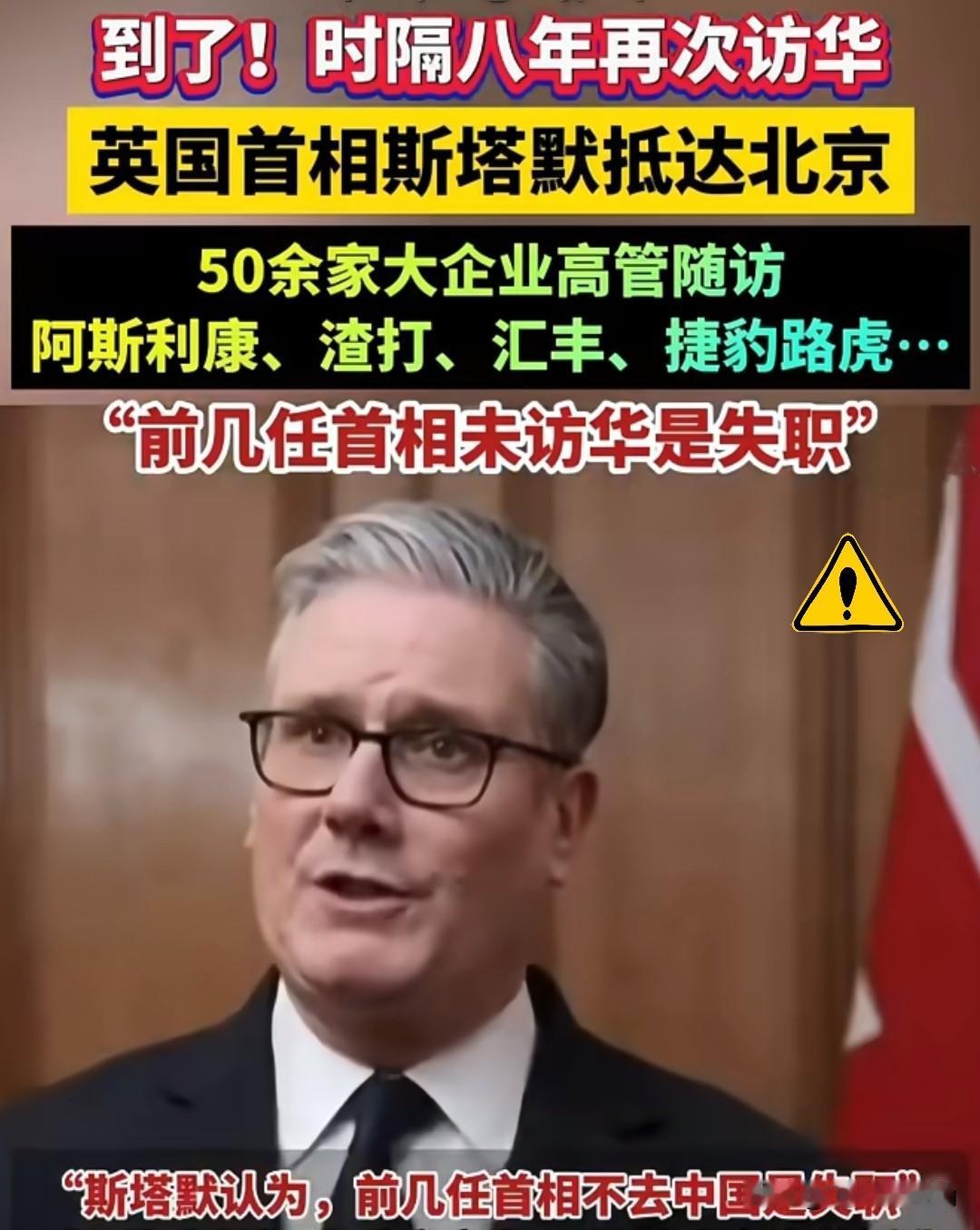 英国首相斯塔默:不访华就是失职! 斯塔默这话看似骂得狠,实则全是现实的无奈! 说前任不访华是失职,看似义正词严,说白了就是骂他们把英国的路走窄了。前任跟着别人瞎折腾,对华政策反复横跳,让英国错失中国大市场,看着法德赚得盆满钵满只能干瞪眼。 如今英国经济拉胯,斯塔默再不低头找合作,国内都快撑不住了。嘴上批前任,实则是给自己的务实路线铺路,更是为了英国的饭碗。 说到底这不是突然清醒,是真得没辙了,大家觉得这份迟来的合作诚意靠谱吗?