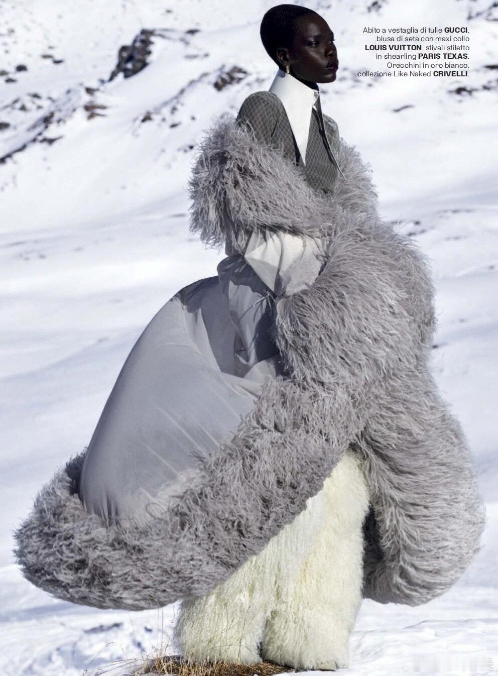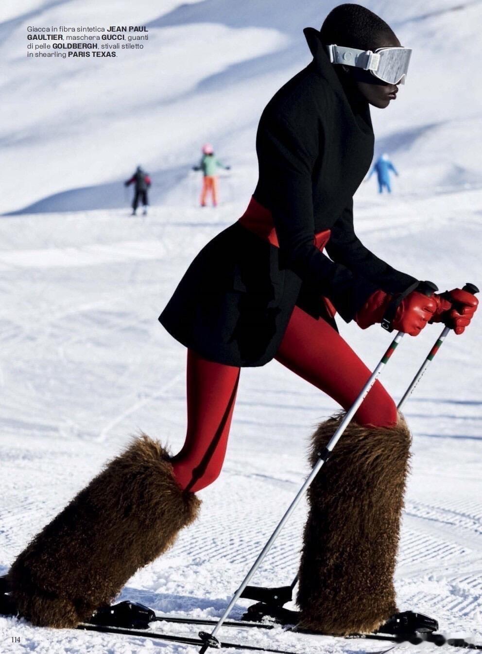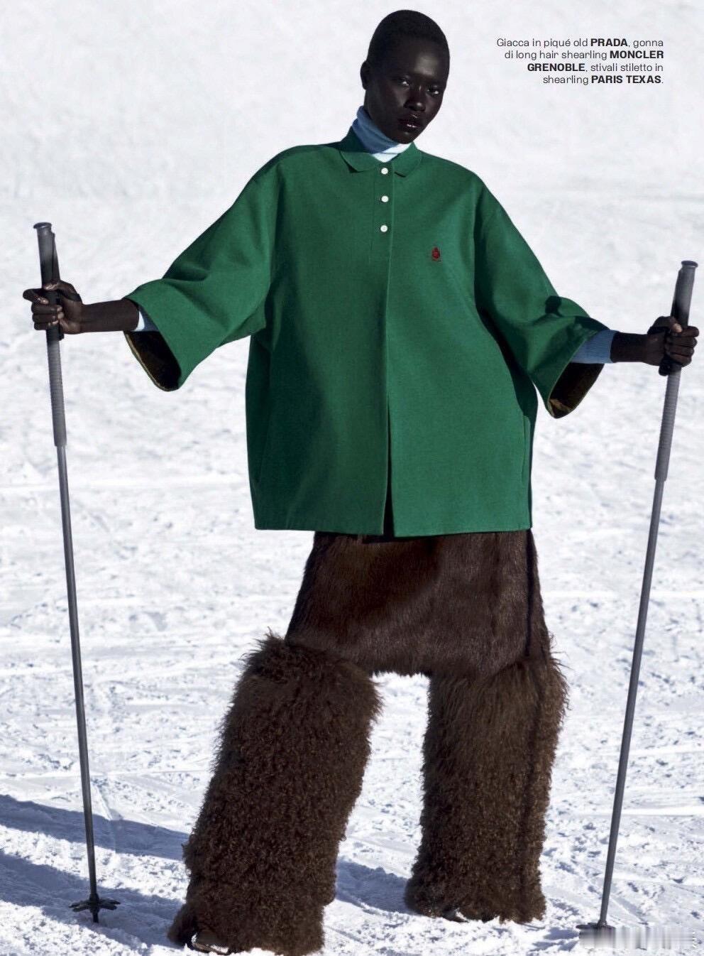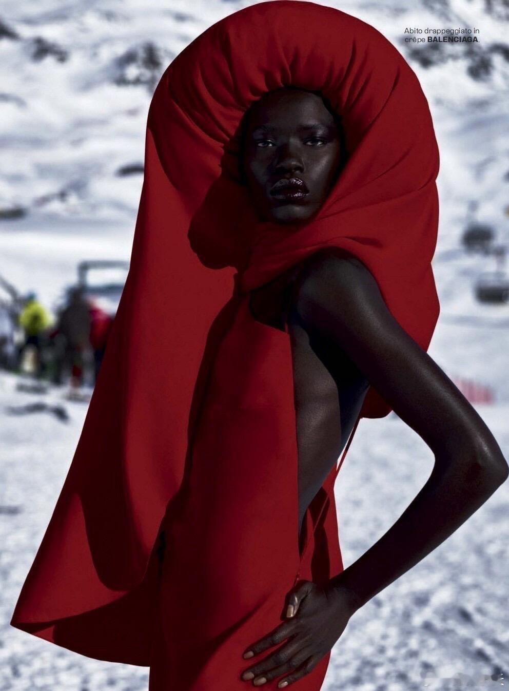 VOGUE Italia February 2026太绝!冬奥会时尚图鉴时尚灵感解读超模Awar Odhiang身着Balenciaga红黑大衣,于雪山背景下登上封面。红与黑激烈碰撞,似滑雪场上速度与激情的交织,时尚感拉满,为即将到来的冬奥奏响前奏,审美直接提升一个level!