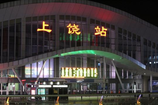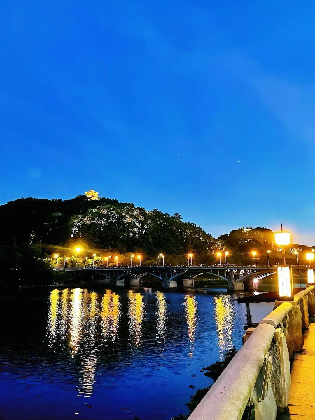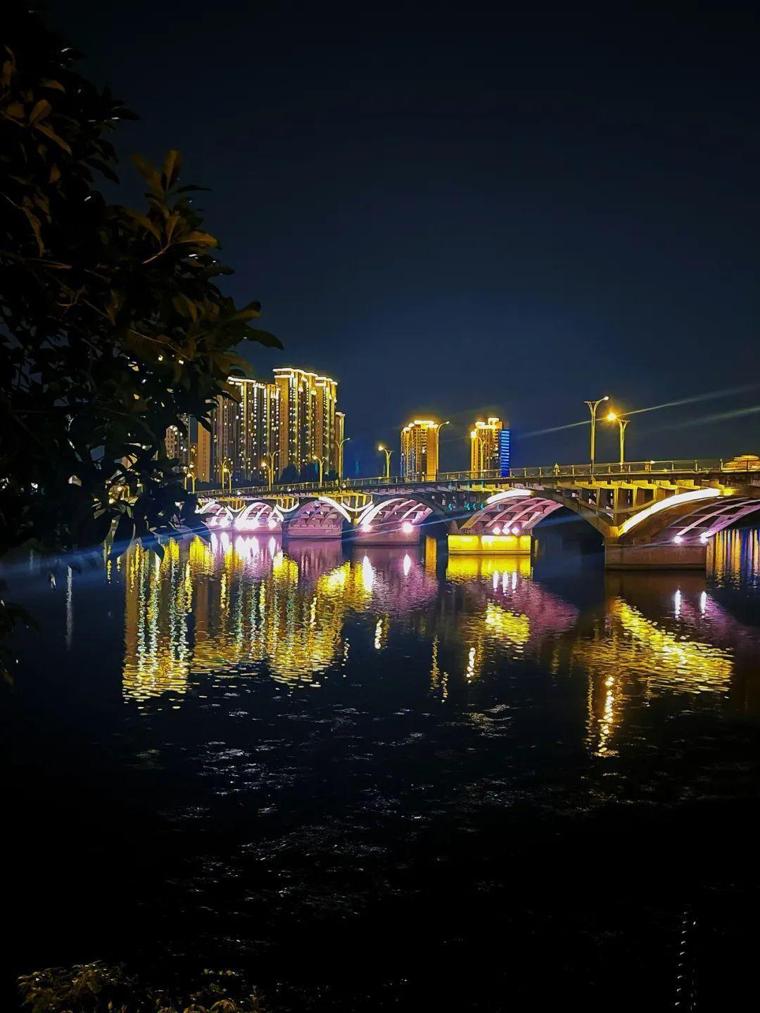 图一为上饶 胜利大桥夜景 :站在宽阔的桥边,两岸高楼灯火渐次亮起,倒映在宽阔的江面上,与初升的月色交织,景色十分迷人。 图二为上饶云碧峰大桥夜景 :暮色笼罩下,路灯亮起,倒影在水中化作无数条跃动的金色光带,一边是车河,一边是信江,能让人触摸到历史与现代的脉动。 图三为高铁站前夜景:以蓝色调为主的光带如水波般在建筑立面蔓延,辅以暖黄色街灯和远处霓虹点缀,营造出兼具科技感与温情的夜景。 图四为上饶华熙LIVE·信江中心广场夜景:作为上饶第一高楼,建筑群主楼在夜晚亮起灯光,刷新了上饶滨江天际线,与信江水岸景观相融合,美如星河秘境。