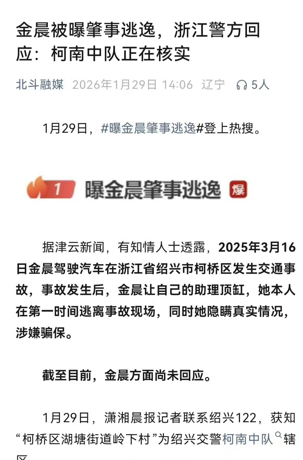 金晨要被封杀了? 知情人士发文称,金晨没有任何公关的机会,商务代言、影视剧、综艺节目录制等,全面停滞,金晨怕是要彻底凉凉了! 谁也没想到,2026开年娱乐圈第一大地震是金晨,肇事逃逸,还让助理顶包。今天热搜都爆一天了。这是非常严重的事情,换做是普通人,也难逃法律的制裁,更何况是站在镁光灯前的明星艺人。如果爆料属实,那么金晨恐怕要被彻底封杀了。 除了粉丝,路人也是痛心疾首。毕竟金晨跳舞真的很棒,她在娱乐圈的观众缘还不错。所以,很多人在讨论,金晨在发生事故后为何不第一时间冷静、客观、依法依规处理,而是选择了容易爆雷的不明智的处理方式。 据悉,金晨目前有《不为人知的故事》《“骗骗”喜欢你2》《野火》《明川有知夏》等多部待播剧。如果一旦被查实,那么,剧组人员的所有付出都要凉凉了,真是可惜了。