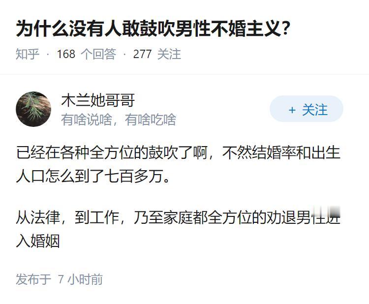 为什么没有人敢鼓吹男性不婚主义? -----------------------
