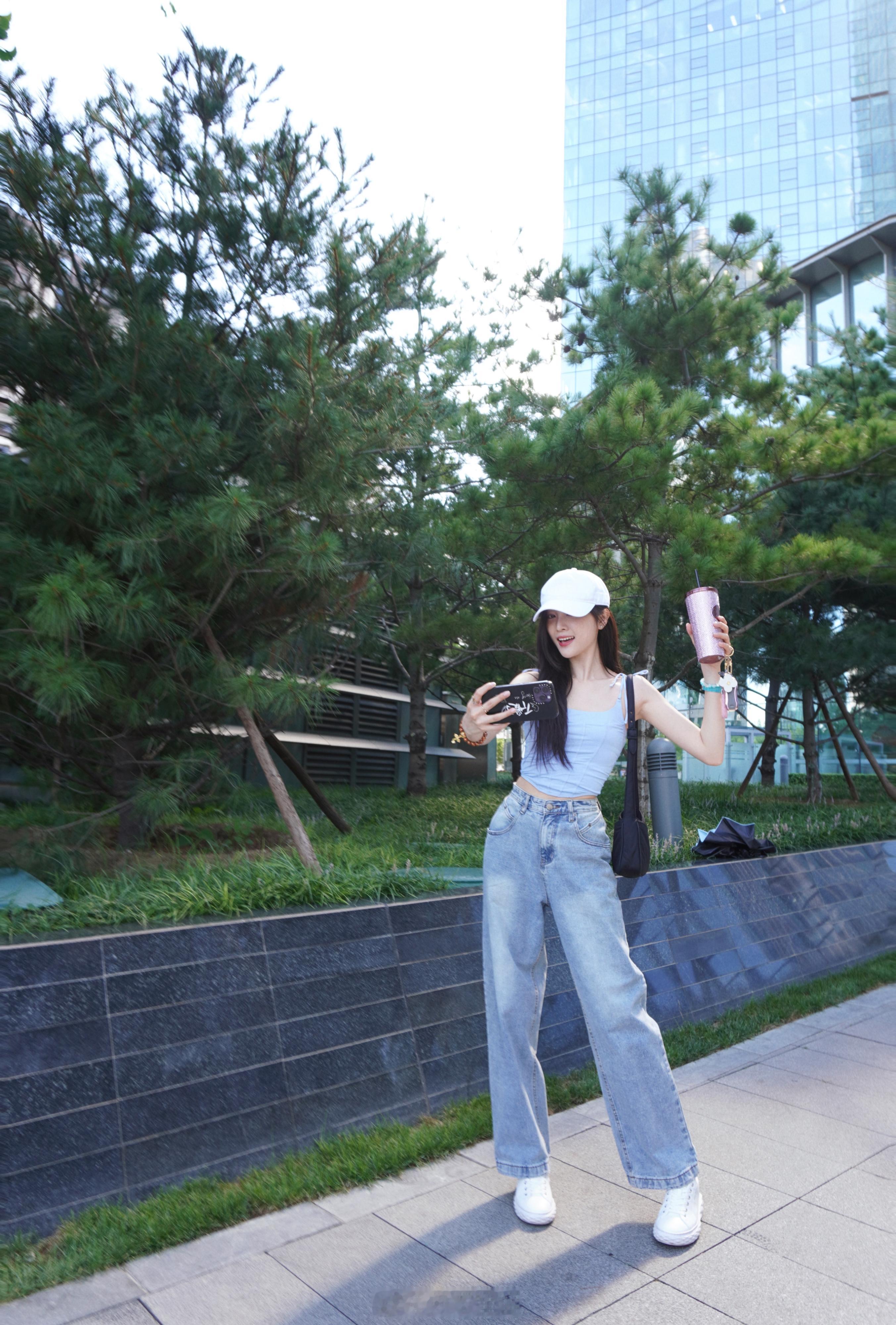 张天爱跟素人合影,胯真的好宽,大宅院似的