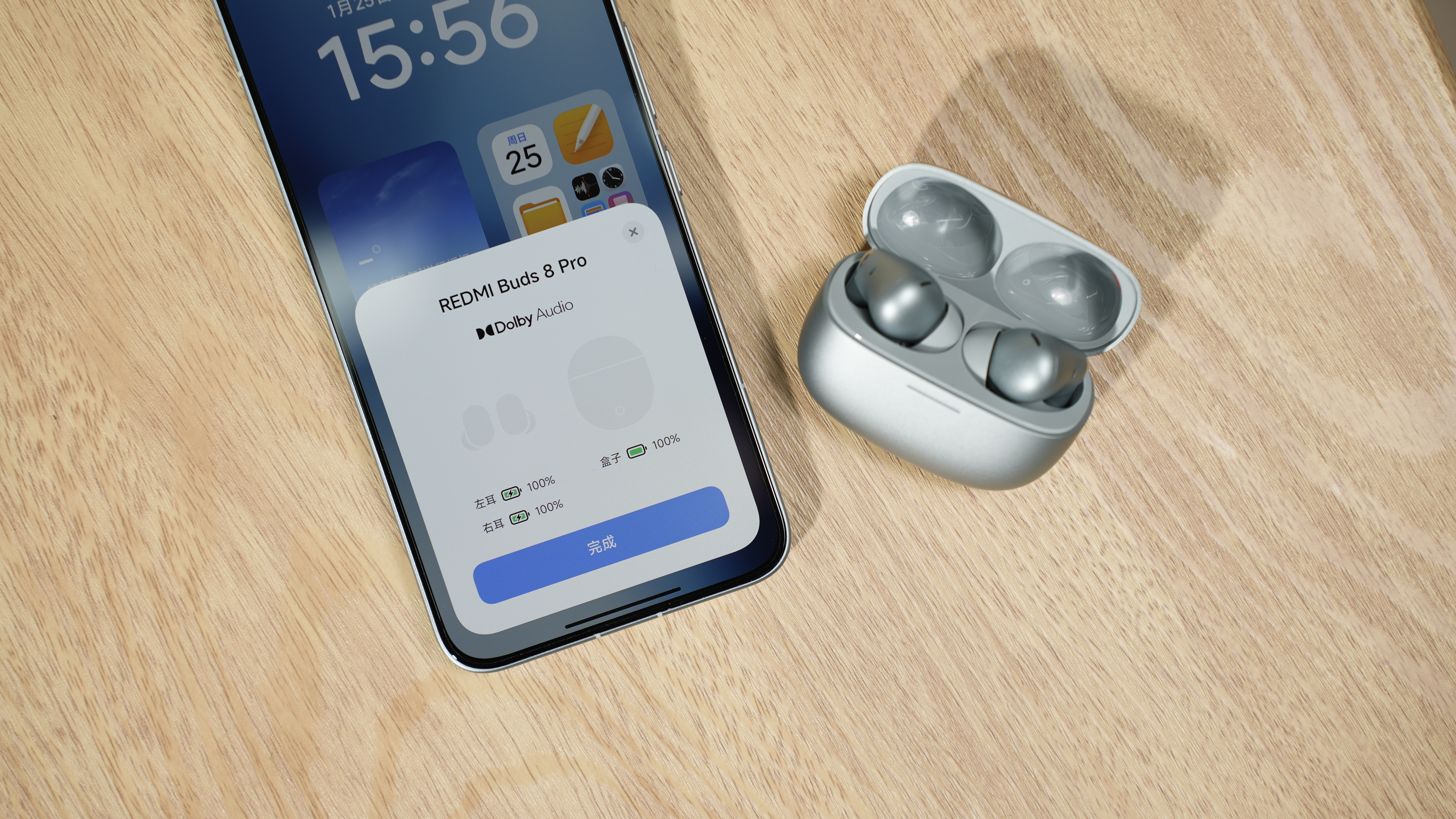 Buds8Pro满配降噪王 这次REDMI Buds8Pro升级了小米深空降噪3.0,能够实现55dB/5kHz宽频主动降噪,还有只能降噪,基于不同场景实时适配,沿用了圈瓷同轴的三单元设计,11mm镀钛动圈单元以及双6.7mm的压电陶瓷单元,双DAC驱动,能够高低音精准分频,整体层次更分明,这个薄雾蓝很清新,做工质感也都在线,支持IP54防尘防水,耳柄也支持滑动触控,配合充电仓续航能达到35小时。听感是觉得层次更加分明,高低音分频很精准,这个价位做到这个降噪非常不错,值得入手。