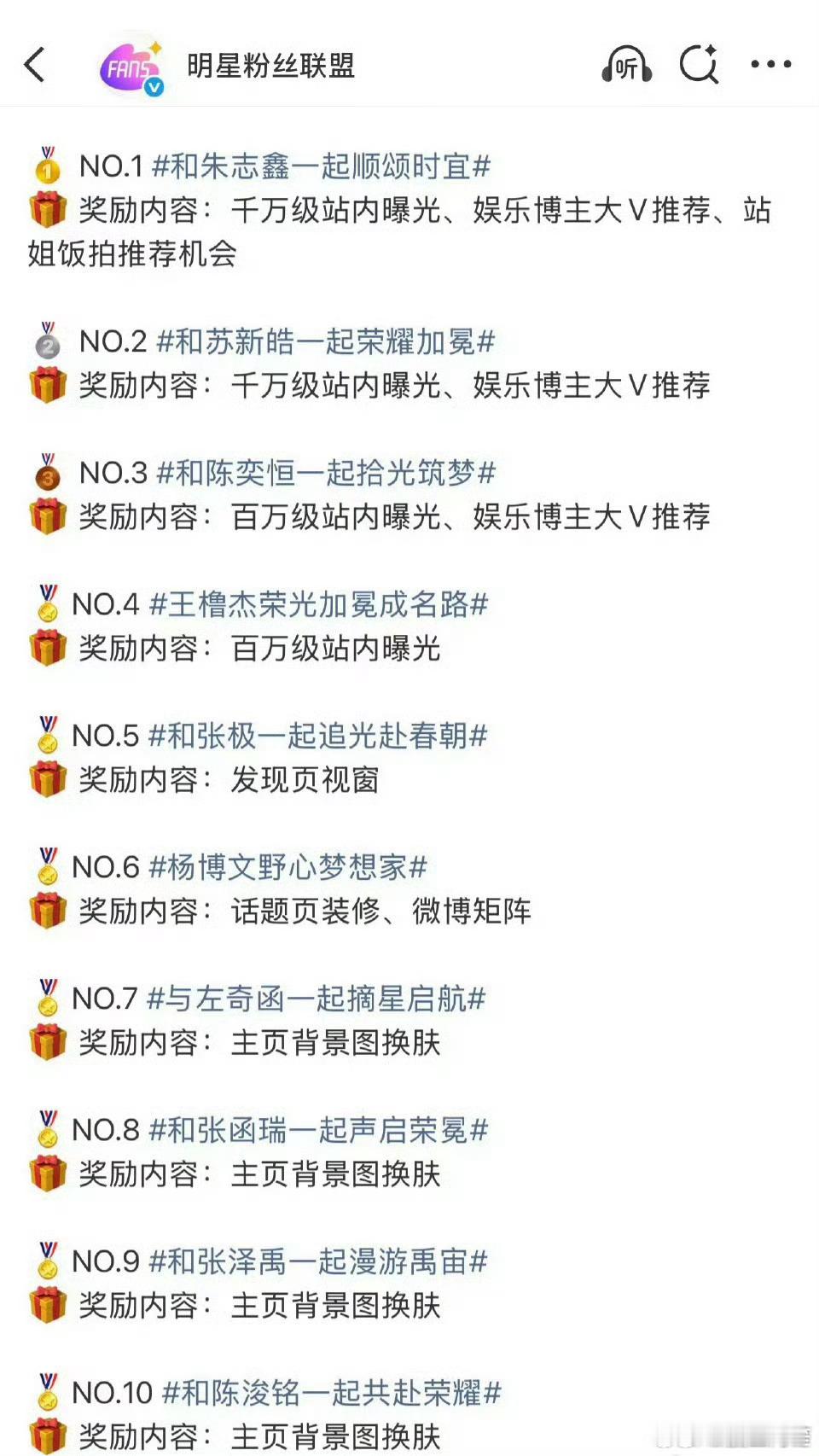 荣耀之战应援活动TOP10出来了:朱志鑫 苏新皓 陈奕恒 王橹杰 张极 杨博文 左奇函 张函瑞 张泽禹 陈浚铭