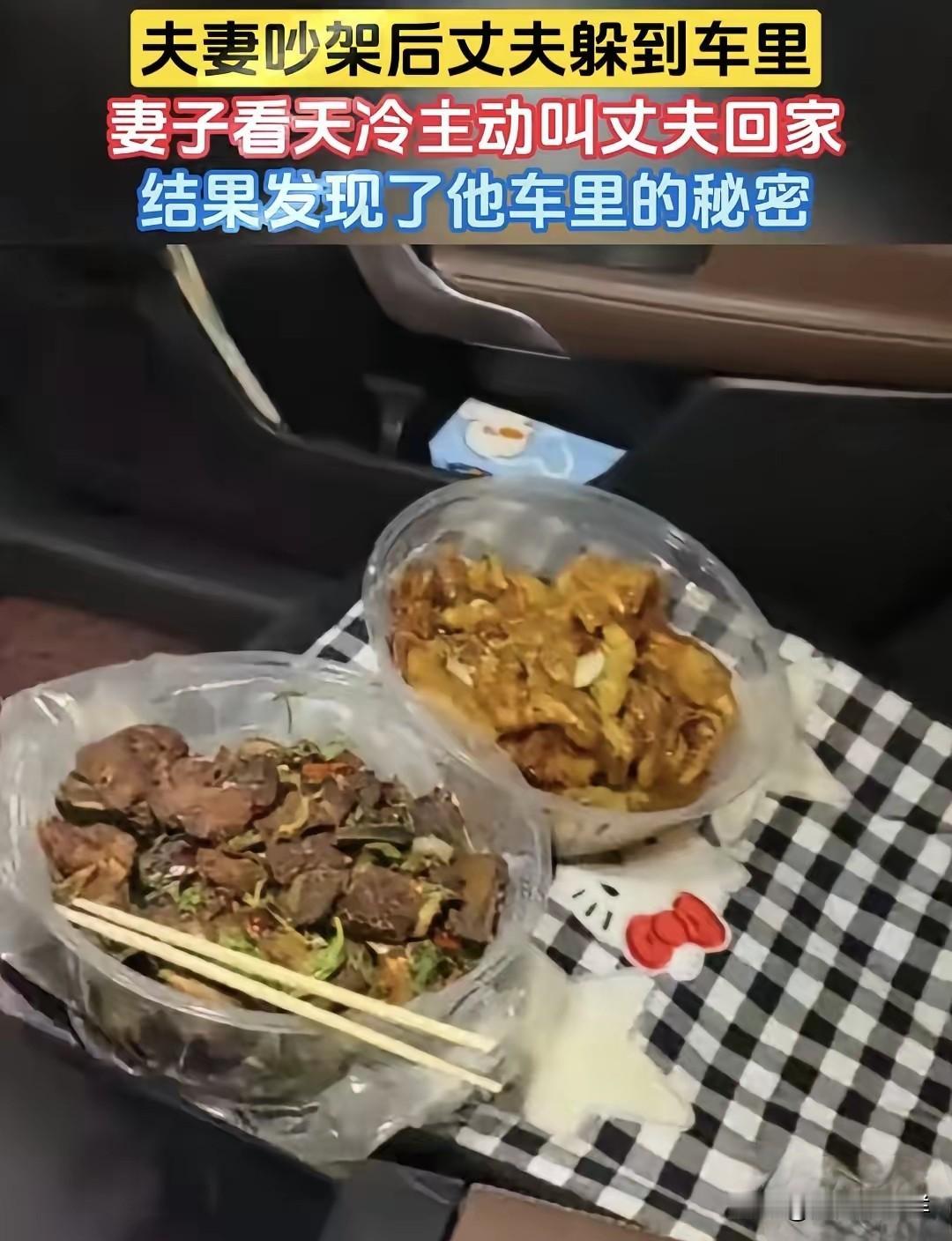 “笑不活了!”晚上,女子和丈夫吵架后,丈夫独自躲进车里,女子担心天冷冻坏他,主动喊他回家,丈夫面无表情直摇头,说啥不回家,女子往车里一看,发现他车里的“秘密”,当场气笑了。网友:吵架归吵架,不能亏待自己。 女子本想主动和解,走到车旁闻到炸肉和孜然香气。她扒窗看到副驾铺着餐布,摆着炸酥肉、卤牛肉两盒硬菜。丈夫正埋头大吃,见她靠近还把餐盒往怀里藏。 女子又气又笑,质问丈夫吵架还藏独食。丈夫含糊辩解只是出来透气,顺路买了爱吃的菜。说着还递来一块热乎酥肉,让她尝尝。 女子本想发作,看到丈夫冻红的耳朵,又被肉香吸引。她接过酥肉咬下,火气瞬间消散。两人隔着车窗分食,很快把两盒菜吃完。 视频在社交平台引发热议。有网友调侃这是“吵架干饭两不误”,也有人说这是婚姻最真实的样子。多数人认为,夫妻间没有隔夜仇,一顿热饭就能化解矛盾。 这起事件折射出当代夫妻相处的典型模式。争吵后不冷战、不翻旧账,用美食和台阶缓和关系。比起激烈对抗,这种带烟火气的和解更有生命力。 现实中,很多夫妻吵架后习惯冷战,把小事拖成大事。而这对夫妻用行动证明,婚姻里没有绝对的输赢,只有互相包容的智慧。丈夫躲进车里,是给自己情绪缓冲的空间。妻子主动喊人回家,是藏在关心里的服软。 类似事件近期频繁登上热搜。有夫妻吵架后一起点外卖,边吃边复盘问题;也有情侣冷战时,用一杯奶茶打破僵局。这些案例说明,年轻人的婚姻观正在改变,更注重情绪价值和生活质感。 婚姻不是辩论赛,不需要争出对错。比起讲道理,一顿热饭、一句软话更能拉近距离。这起事件之所以引发共鸣,正是因为它戳中了大众对“接地气婚姻”的向往。 在快节奏的当下,人们越来越明白,好的婚姻不是没有矛盾,而是矛盾出现时,愿意用温暖的方式解决。就像这对夫妻,吵架归吵架,饭要吃,日子也要继续过下去。 各位读者你们怎么看?欢迎在评论区讨论。