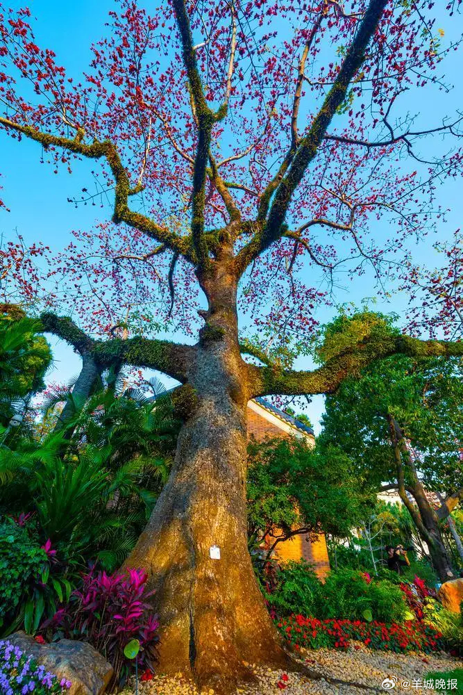 #广州357岁的木棉王提前开花了#【广州357岁“木棉王”提前开花!还是罕见的双花同绽】“357岁木棉王反向‘冲业绩’了!”1月28日,广州中山纪念堂内那株357岁的“木棉王”枝头,悄然绽开两朵红花——不仅比往年提前了近一周,更罕见地迎来“双花同开”,为羊城送上春日祝福。这株被誉为“中国最美木棉”的古树,是许多广州人心中的自然地标、情感图腾。现场可见,古树苍劲的枝干上,两朵红艳的木棉花与中山纪念堂的蓝瓦黄墙相映成趣,宛如一幅早春画卷。专家推测,今年它的“提前报到”与罕见的双花同绽,可能与近期温暖少雨的气候及园方精细化养护有关。围绕这次开花,中山纪念堂此前发起的“2026年木棉王第一朵几时开”全民竞猜活动,短短一周便吸引了超400位市民参与。目前活动已进入开奖阶段,猜中日期的前5名参与者将获得纪念文创礼品。木棉花是广州市花,又称“英雄花”,其炽烈向上的姿态被视为城市精神的象征。园方预计,未来一个月内,园区内29株木棉将陆续盛放。如果花期持续,今年春节假期或将打破“木棉开花总错过春节”的惯例,届时市民和游客可在假期邂逅“红棉映华堂”的绝美景致。([原创]记者:孙牧;编辑:杨雨桐;审签:艾渝)