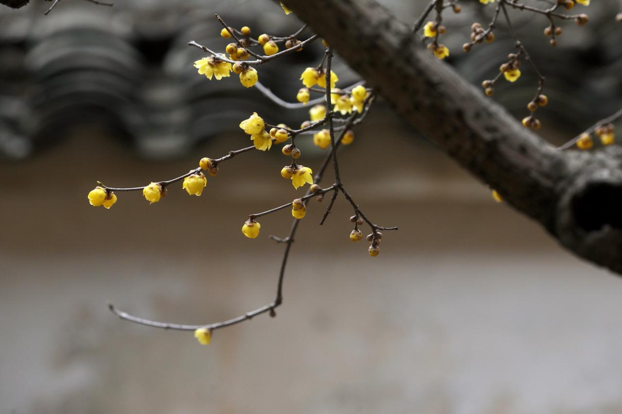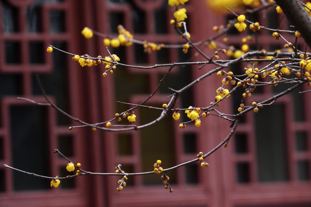 湖州除了铁佛寺的两株网红百岁梅花,你可知道比这两株梅花更早的古梅花观里的梅花! 大寒过后,纯阳宫的深院中,檐角处,淡淡珑珑坠坠。 枝枝掩映,珠珠萼萼,楚楚盈盈。 任多少功名富贵,毁誉褒扬,都已经消散在浩渺的岁月里,显得苍白而无力。 唯有这腊梅,早已浸满岁月的醇厚。 在日月轮回的时光里,安之若素脉脉流香。腊梅无言,相守默默,穿越百年,只为与你相见。 腊梅和蜡梅,其实“蜡梅”才是正解。以前人们多用“腊梅”,因为它在腊月开放。但从植物学角度,它花瓣蜡质,所以叫“蜡梅”更合适。 你看那黄色腊梅花图片,金黄透亮的花瓣,就像涂了一层蜡,质感十足。凑近闻,还有股独特的清香。它傲立在寒冬中,不惧寒冷,这种精神也让人敬佩。现在知道了吧,以后还是叫“蜡梅”更专业,可别再傻傻分不清啦…… 我心动了……你呢?