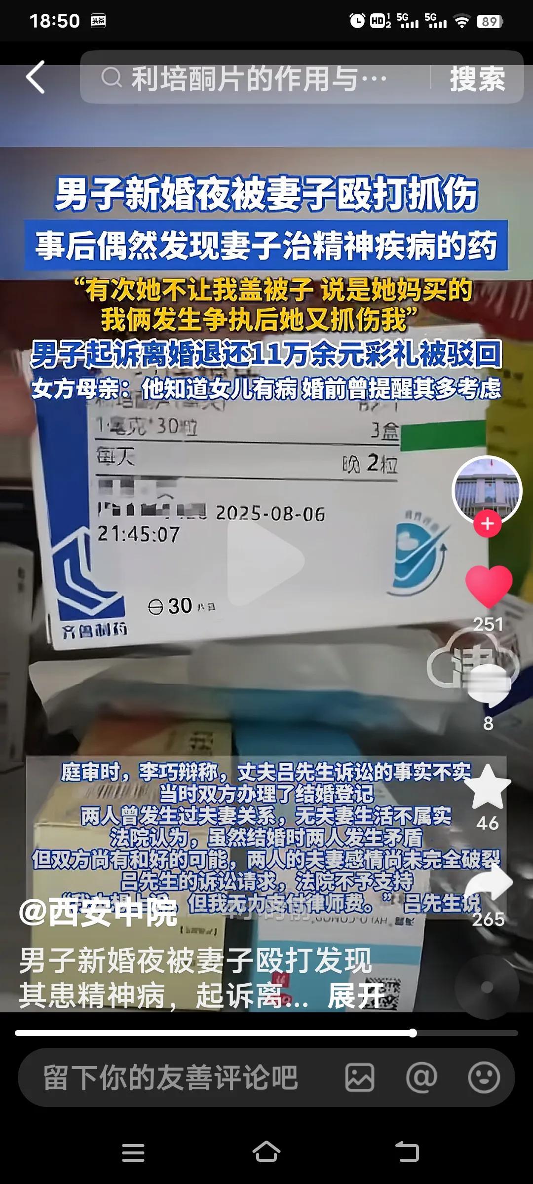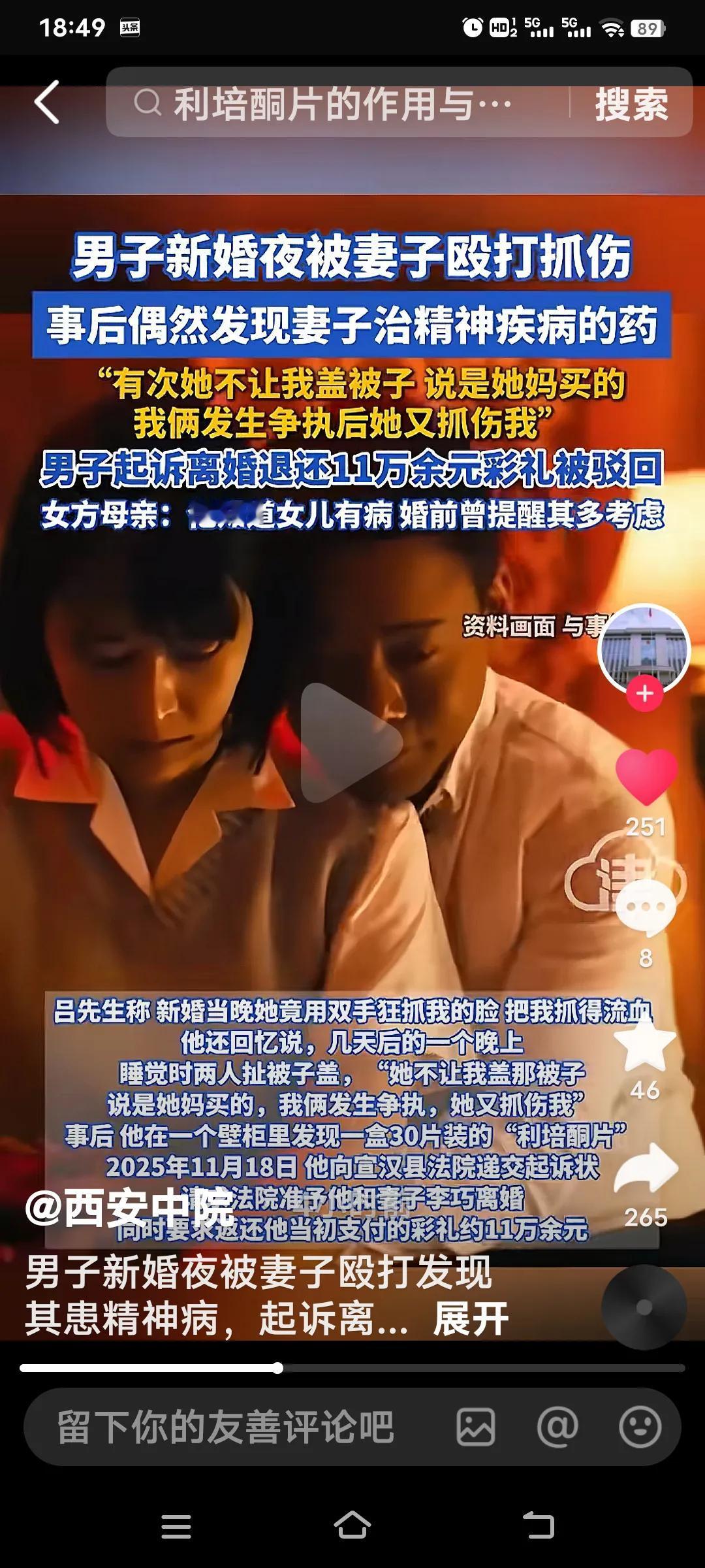 近日,四川38岁的吕先生向记者透露,自己结婚当天竟被妻子殴打、抓伤。 吕先生表示,经人介绍,2024年9月下旬,他与老家的一名女子相识,随后步入婚姻殿堂。然而,结婚当晚,妻子便对他殴打,用双手抓伤了他的脸。 吕先生回忆,当时两人发生矛盾,妻子扯着被子称这是她娘家买的,不让他盖。事后,吕先生在家中发现了她用过的精神疾病药物,由此怀疑她婚前隐瞒了精神疾病。 吕先生遂提出离婚,并申诉要求女方返还11万彩礼,然而最终该诉求被驳回。女方的母亲称,她们事先已告知吕先生女儿患有精神病,让他慎重考虑。法院认为,两人虽在婚后产生矛盾,但仍有和好的可能,尚未到无法挽回的地步,因此驳回了吕先生的上诉。吕先生则表示自己不会支付律师费。 这种情况着实棘手,婚离不成,还让两人的感情愈发糟糕。说女方李巧有精神病吧,她却还知道辩称吕先生诉讼的不是事实,称两人发生过夫妻关系,“无夫妻生活”的说法并不属实。 由此可见,婚姻大事必须深思熟虑。毕竟彩礼动辄数万,倘若两人无法共同生活,到最后不仅彩礼难以追回,男方的名声也会受损。在当今社会,娶个媳妇何其困难! 试想,新郎满心欢喜地迎接新生活,却遭遇如此状况,这不仅让他身体受伤,心灵更是备受创伤! 结婚后被家暴