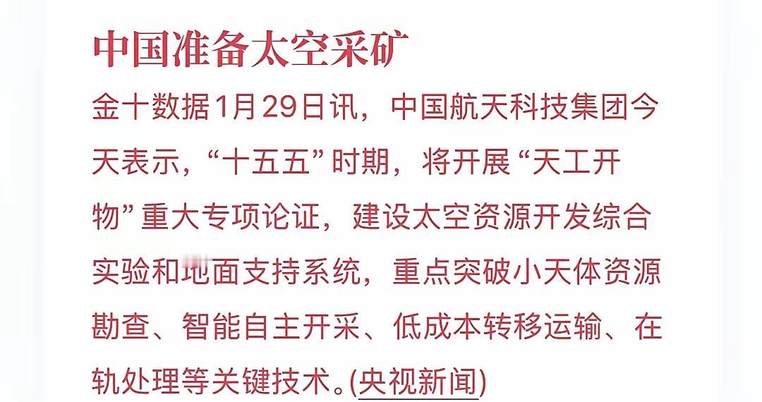 商业航天大消息。商业航天这是要把天捅破。2026年肯定是,商业航天的元年,这利好一个接一个。这次商业航天,不只是卫星多的事儿了,这次要大力发展,多个方面。 规划将大力推动发展,“太空采矿资源、太空旅游、太空数智设施、太空交通管理等新领域。 这人越来越聪明了,开工天物,这是要把天捅破吗?这以后旅游,地上你能玩儿,天上你也能玩儿。说不定以后,你在天上涮着火锅,我们还能视频通话呢!