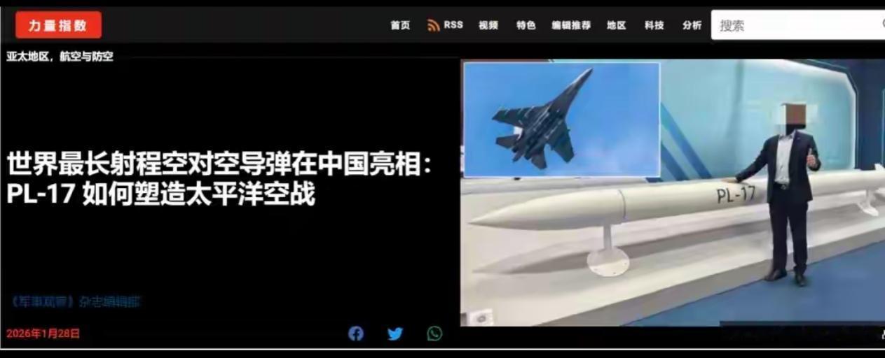 中国空军一款代号“霹雳17”的空对空导弹,弹长5.8米,弹径0.305米,最大射程500公里,射程远超俄罗斯的R-37M和美国的AIM-174等空对空导弹。 这款中国空军的杀手锏空战武器,近日被美国《军事观察军事》网站提起,并称相较于美俄具有显著优势。