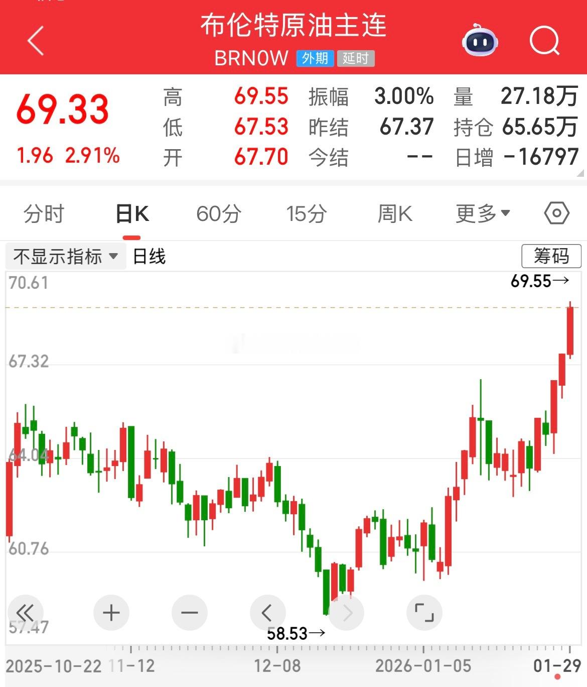 布伦特原油涨超3% 布伦特原油涨超3%,现报69.4美元/桶。 原油LOF基金 明天又有炒作由头了