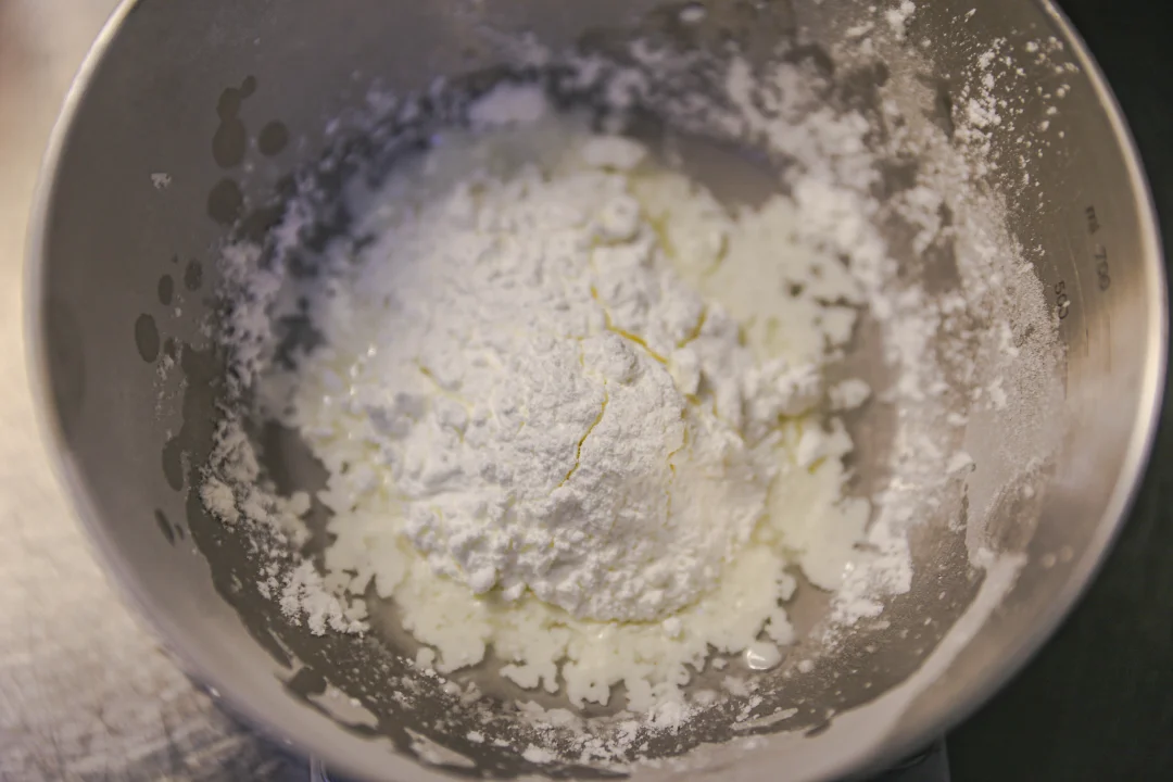2️⃣:食盐4克,冷水20克, 土豆淀粉40克