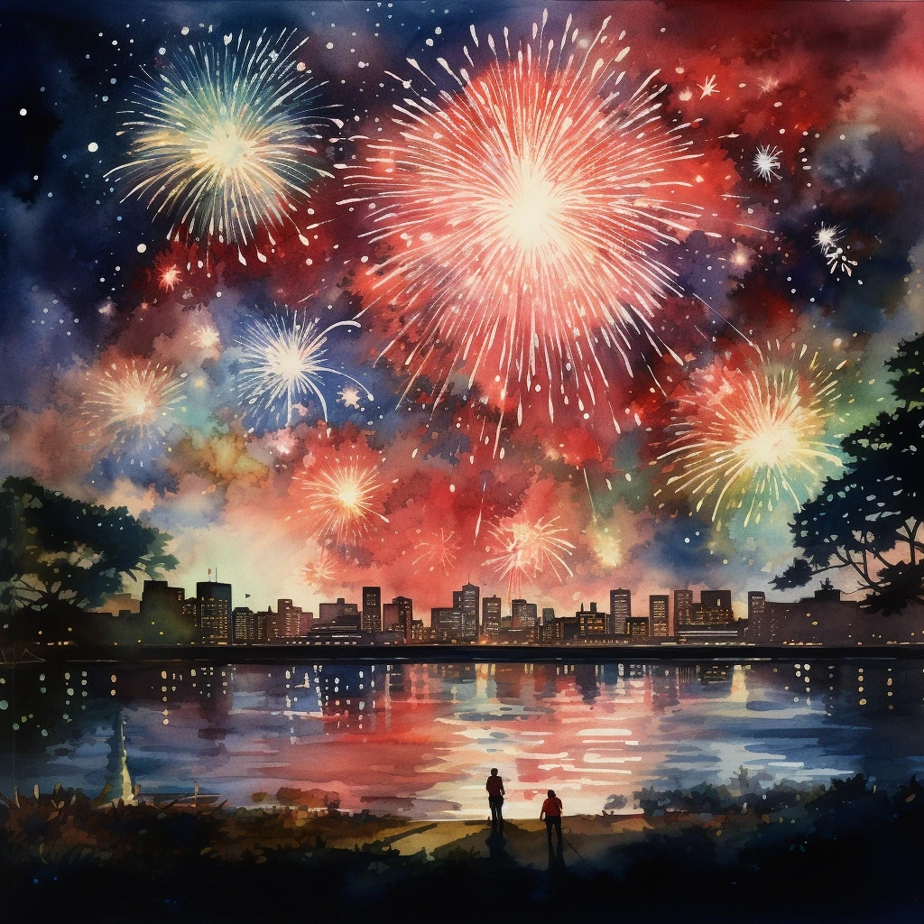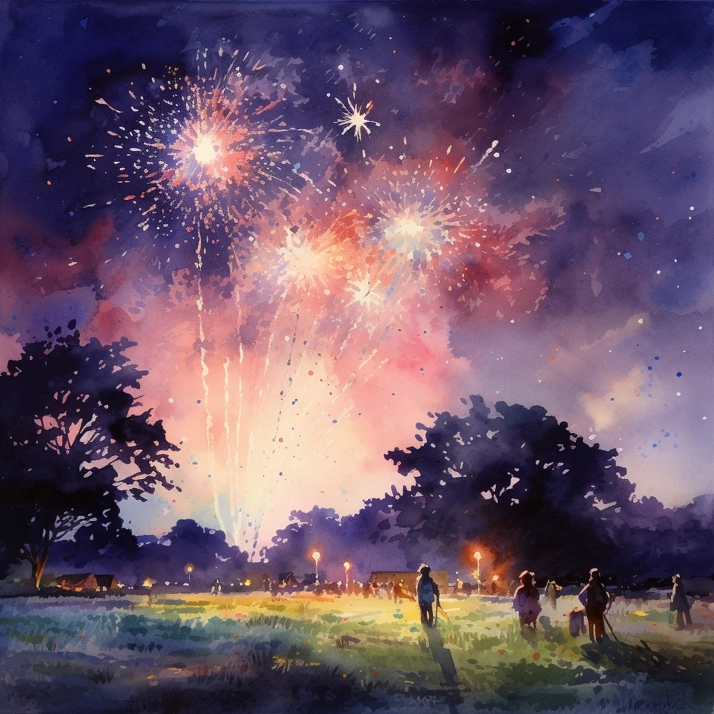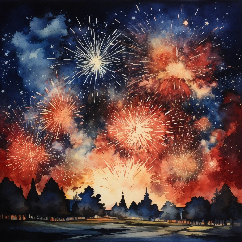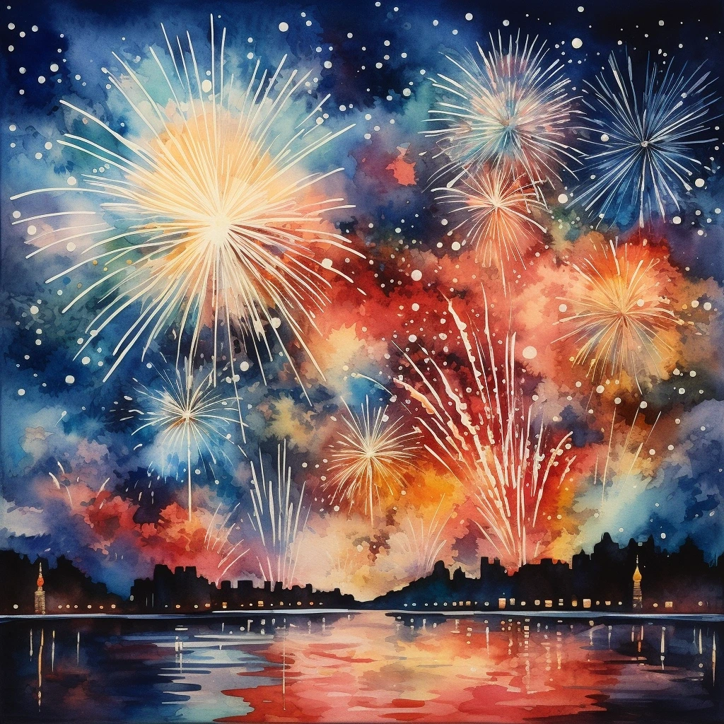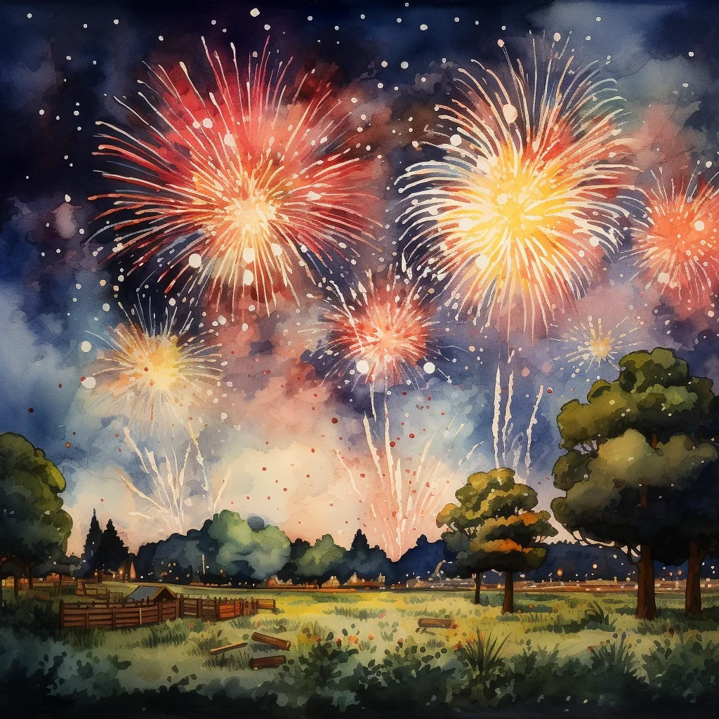 纷纷灿烂如星陨,赫赫喧豗似火攻 烟花 梵高 水彩 midjourney AI 向烟花许个愿 油画 水彩和油画混搭,各有各的特色。