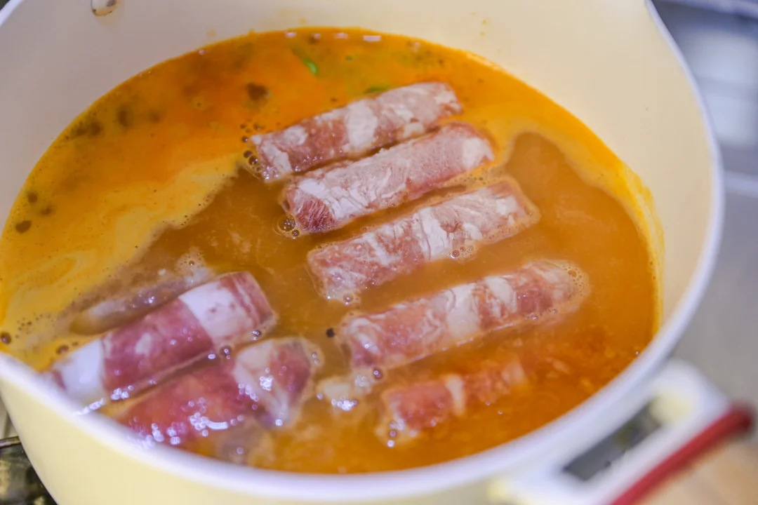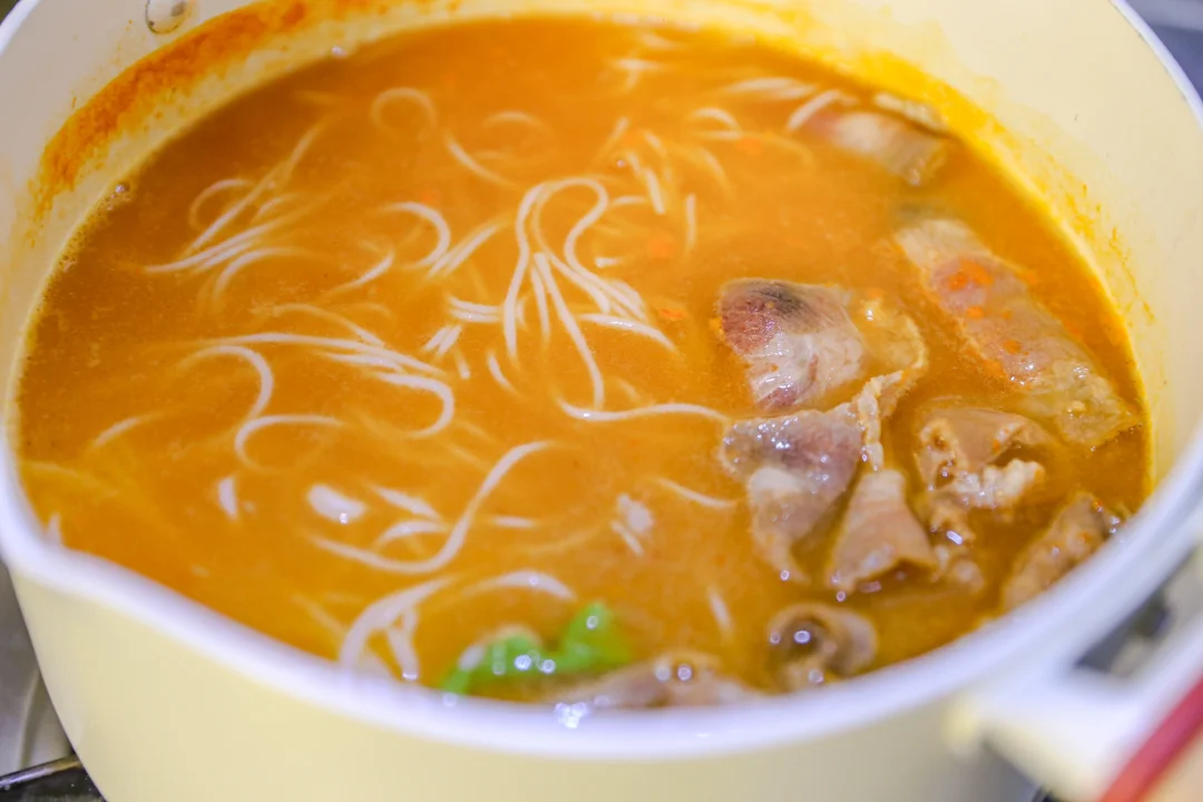 今天用现成的红酸汤做了家庭版的凯里酸汤米粉。