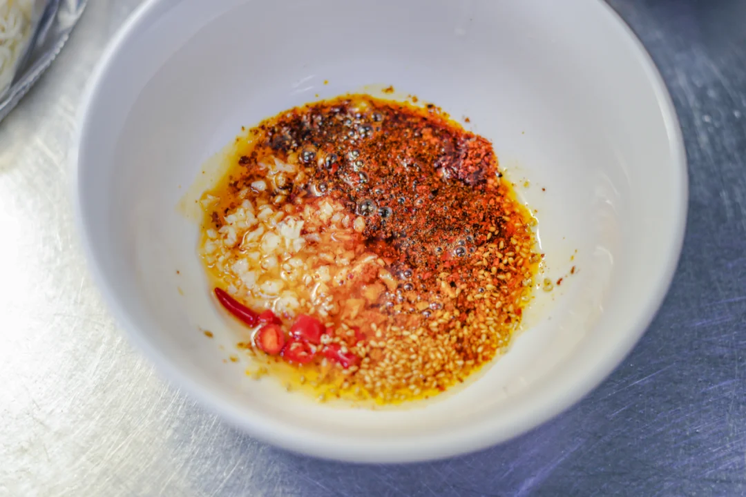 想吃酸的时候来上一碗酸汤素面,鲜、辣、香、酸的味道会在你的口腔里久久不能散去,非常过瘾。 一道操作非常简单又好味的酸汤面条,是你最好的选择。 碗中加入蒜末,熟芝麻、辣椒面、小米辣打底,热油泼在上面。 加入生抽、食盐、白糖、白胡椒粉、陈醋,搅拌均匀。 加入煮面条的汤,放入煮熟的面条,加入煎蛋。