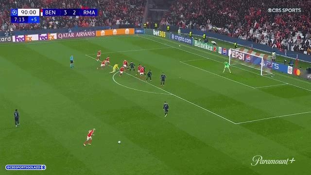 马卡报:皇马在本菲卡门将特鲁宾进球前的防守,5v8,有三名球员无人盯防。😳欧冠联赛本菲卡4比2皇马