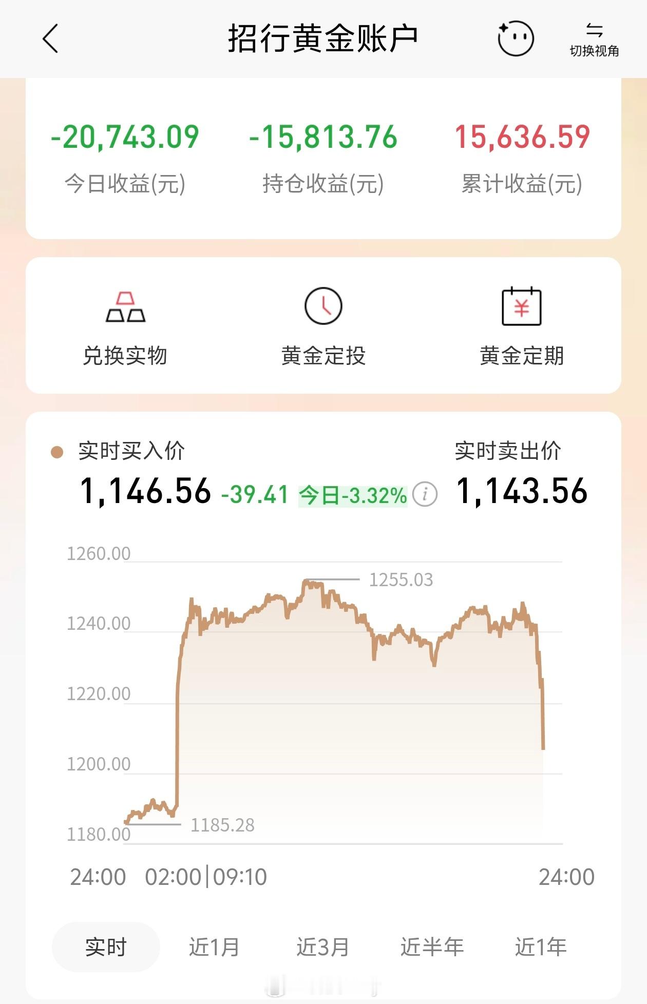 黄金大跌,今天最高持仓赚了1.4万,现在最高亏了1.5W,黄金大瀑布了。。我的天