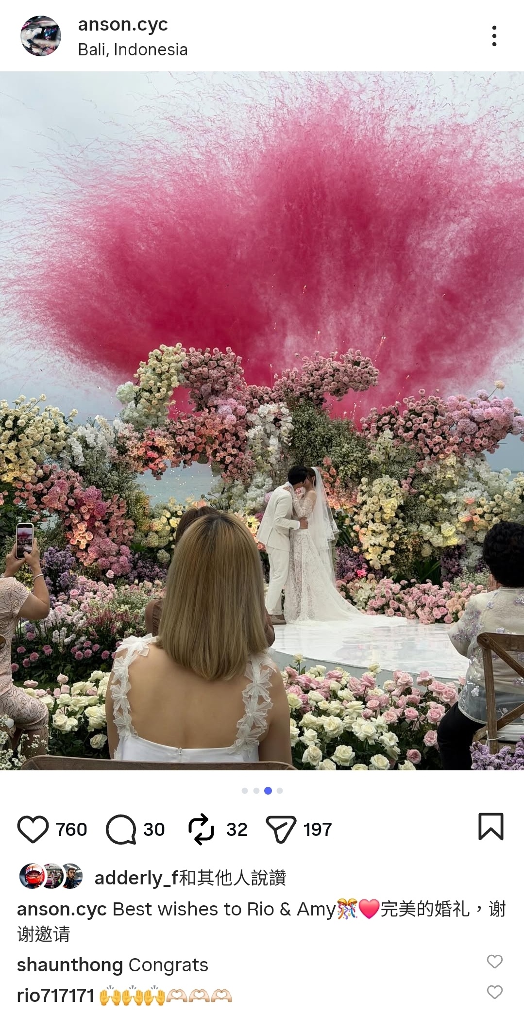 博君一肖 恭喜RIO花开并蒂,喜结连理巴厘岛婚礼照片上笑得憨憨的样子,一看就很幸福可不要再为了拆我家CP去祸祸人家小夫妻喽