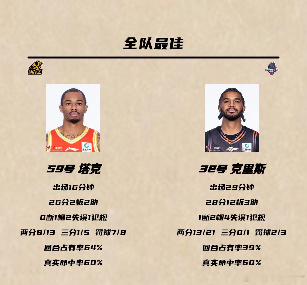 广厦男篮战胜山东男篮 这和上次两队对决一样,又是一场高强度的绞肉战。在这种级别的身体对抗中,小巴里布朗往往会有些不适应,会放弃突破、退化成为看天吃饭的纯三分射手,但突破和身体对抗恰恰是塔克的长项。塔克本场出战16分钟就狂揽26分。他三分依旧不准(三分5中1),但他在三分线内13投8中,外加博到8次罚球,几乎用一己之力捣碎了山东男篮的铁桶阵,突破犀利不惧对抗,简直是CBA版韦德,广厦打不开局面时他就是最不讲理的一把尖刀,生生能用突破和对抗杀出一条血路。塔克目前场均获得7.5次罚球,高居CBA第五,但他是前五中唯一一位出场时间低于20分钟的球员,也是唯一一位替补球员。塔克在身体对抗大战中很少掉链子,他也就是在广厦打替补,换作其他队毫无疑问就是进攻首选。为什么广厦总能选到这么好的外援?