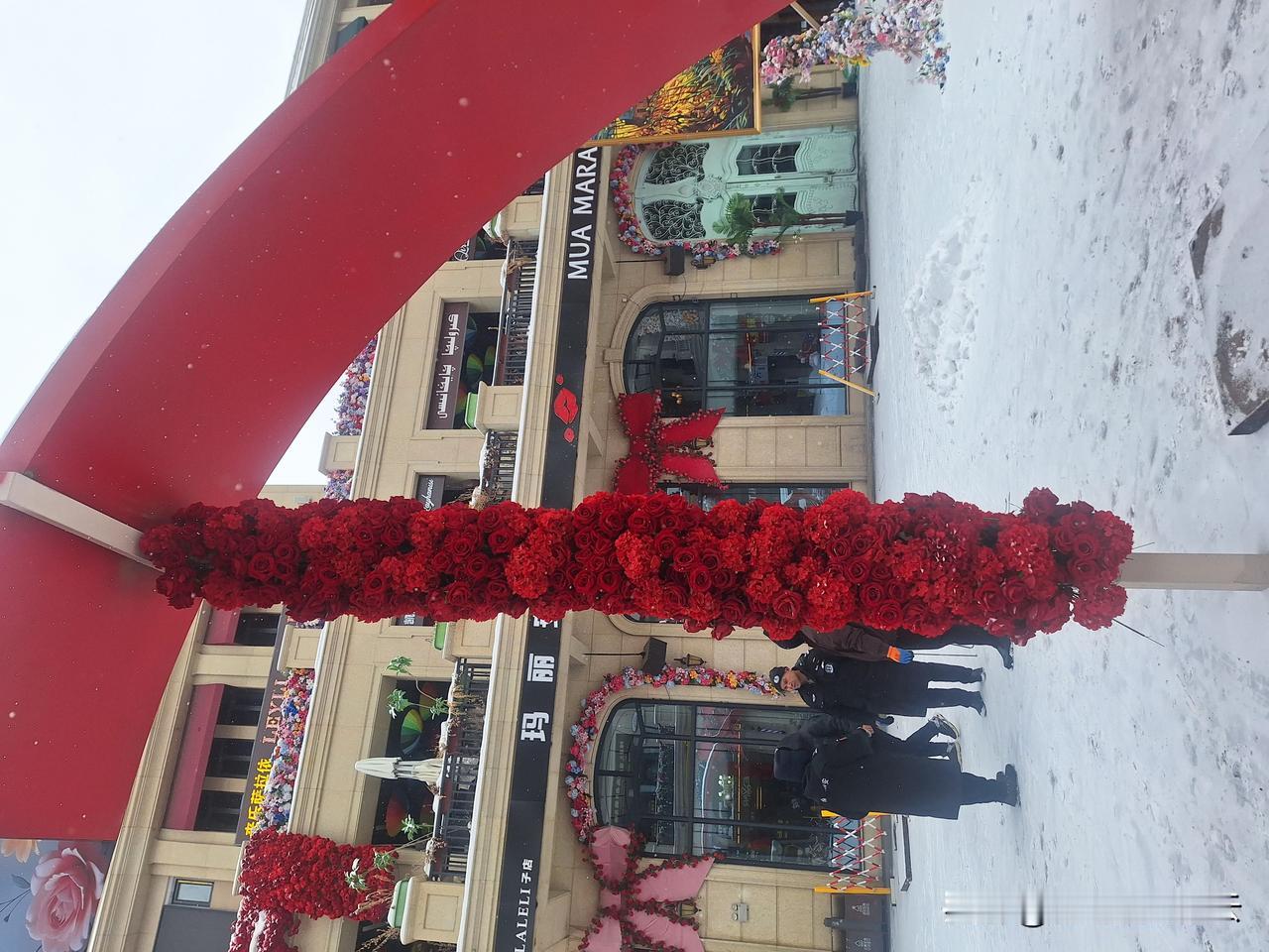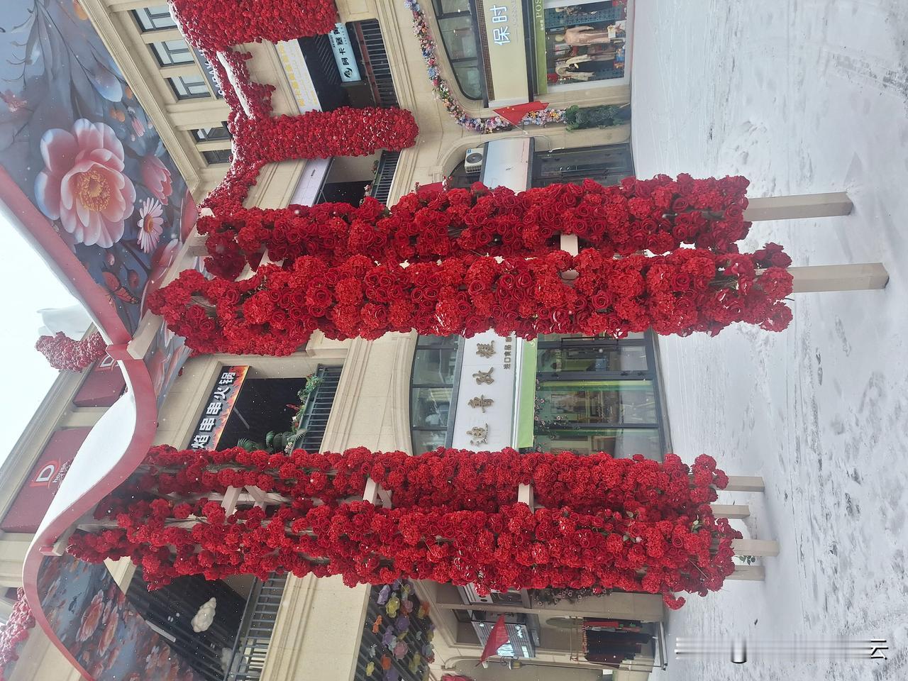 洁白的雪花,娇艳的玫瑰