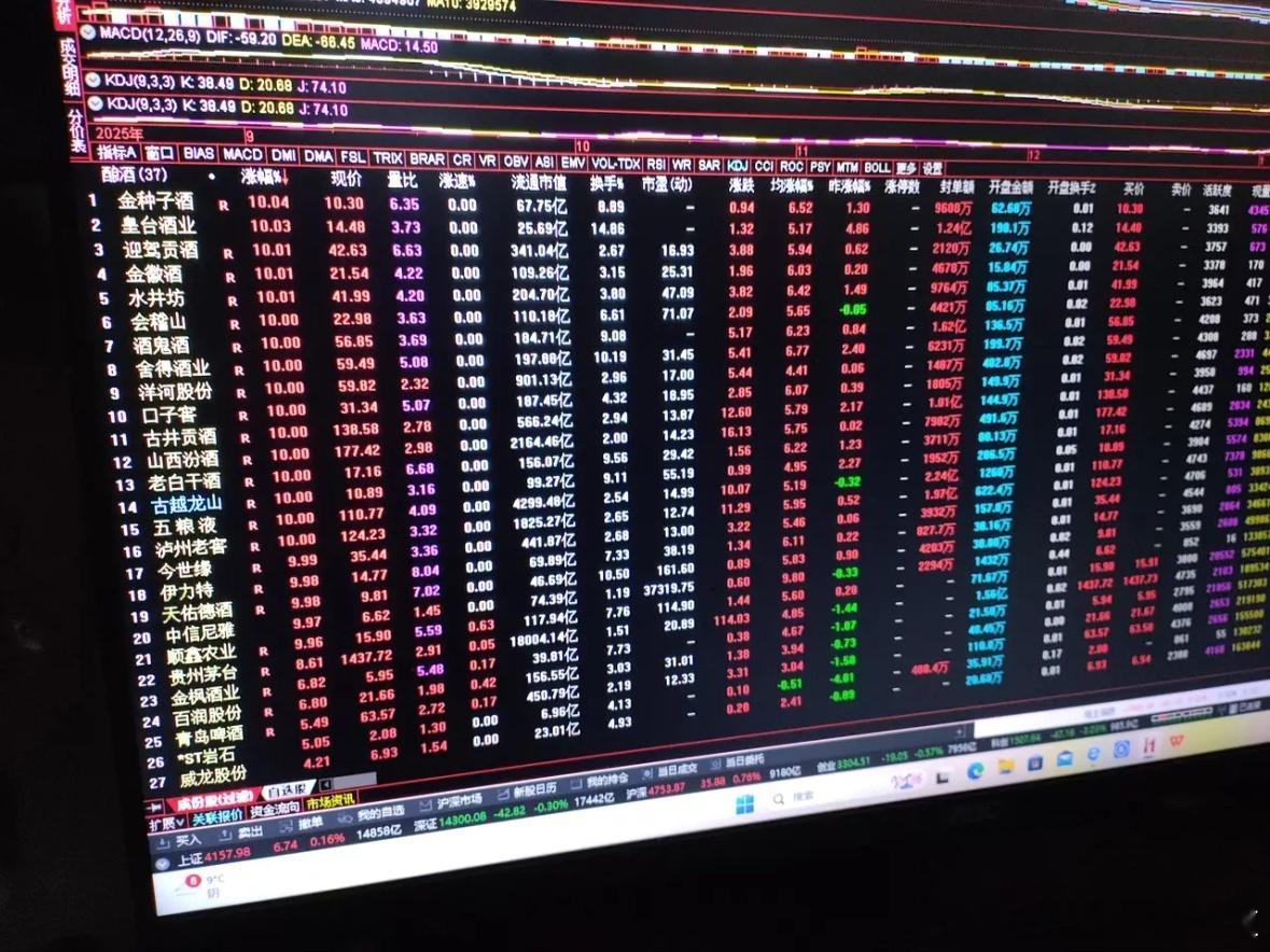 酿酒板块今天在A股无疑是最耀眼的,暴涨8.89%,在沪深两市56个行业板块中排名第一。该板块今天日K线收巨阳,吞下5条日均线,累计成交668.5亿,比上个交易日增加449亿,有巨量资金在踊跃进入。酿酒板块掀起了涨停潮,37只个股中有21只涨停,就连1.8万亿市值大块头的贵州茅台涨幅也达8.61%。酿酒板块自2021年见顶后,也连续下跌4年,腰斩的个股比比皆是,长线投资者苦不堪言。今天,该板块行情给人一种柳暗花明,峰回路转的感觉。酿酒板块回暖,一是超跌反弹,二是春节大消费旺季来临。