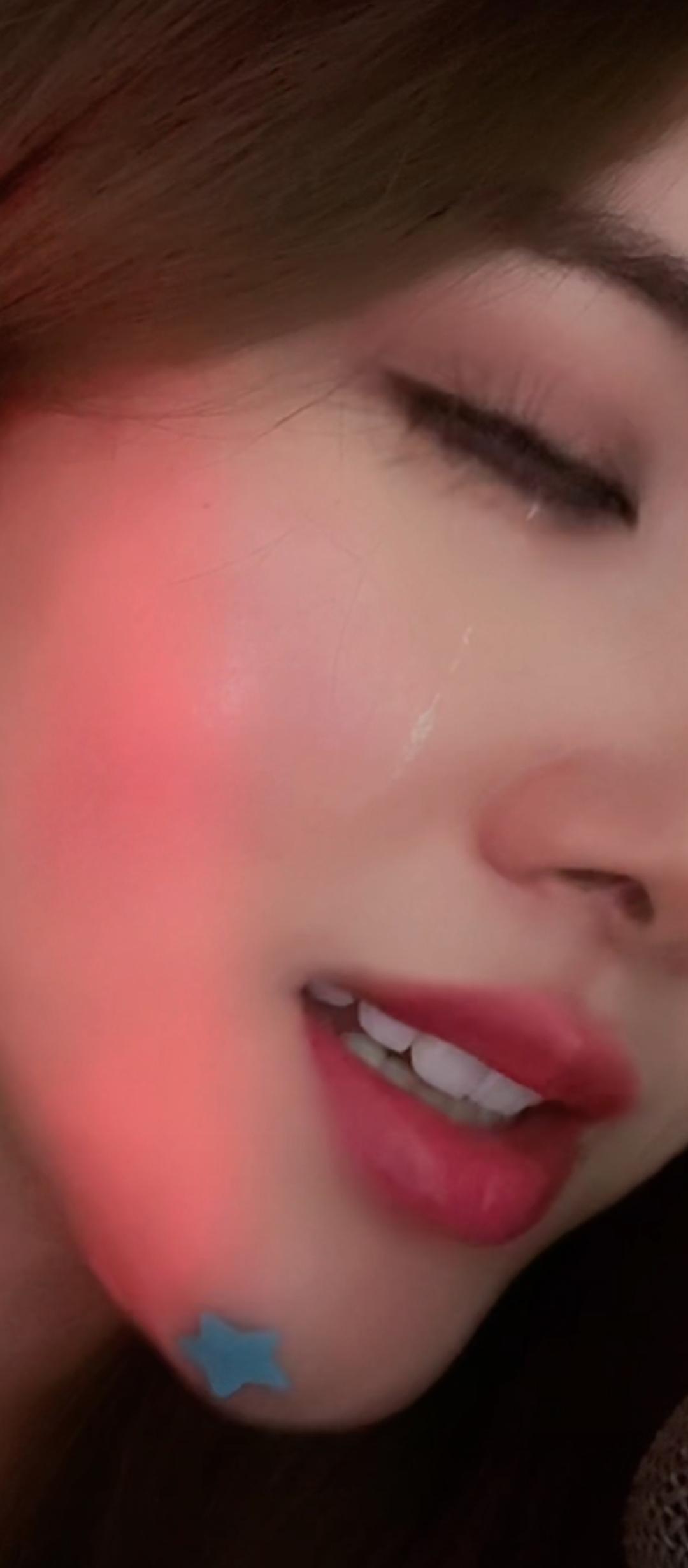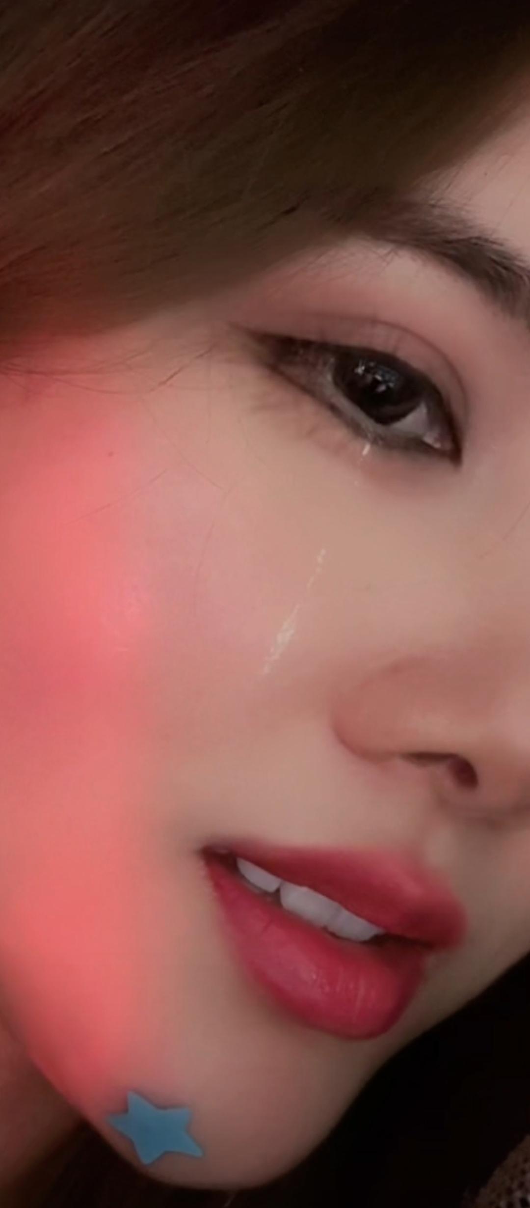 “泪光闪烁,红唇微启,蓝星点缀,唯美动人”💄💦✨