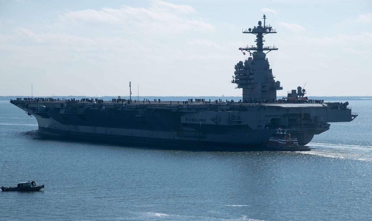 新航母! 美最新航母“约翰·F·肯尼迪”号(CVN 79)正准备进行首次航行测试,该测试将持续至年底。 与杰拉尔德·R·福特号航空母舰不同,其姊妹舰约翰·F·肯尼迪号配备了新型SPY-6主动扫描雷达站。