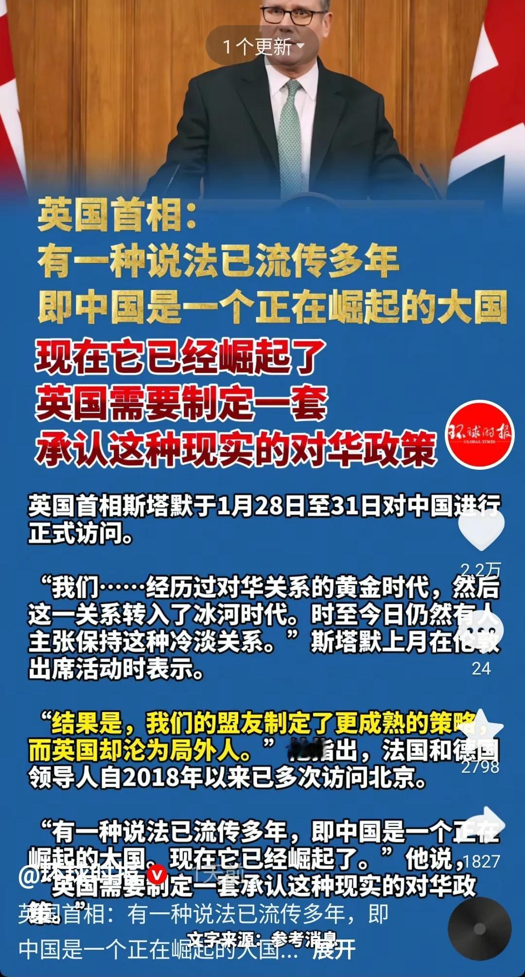 英国首相说:中国已经崛起,英国需要制定一套承认这种现实的对华政策。 加拿大首相:中国比美国更可靠也更可预测。 法国总统:法国才是新兴国家,我们需要中国的技术。 德国总理:中国凭借自己的战略和远见一步步跻身于大国行列。 韩国总统:韩中两国的合作非常重要 澳大利亚:中国是我们的最大贸易伙伴,对华贸易比对美贸易重要10倍。 日本高市早苗:台湾有事就是日本有事。。。。。。。 英法德加拿大以及澳大利亚,就是日本通常讲的国际社会。连它的老大美国都要和中国改善关系试图建立G2了,日本还在挑衅中国。这不符合日本的生存哲学,之所以这样那是因为高市只迎合国内对现状不满的对华不友好分子,根本不想看国际局势新变化。 现在高市早苗民意支持率还蛮高的,对这种人必须强硬到底,才可以让他们心服口服。中国的实力对决日本最后的倔强,谁输谁赢,就看还能持久下去!