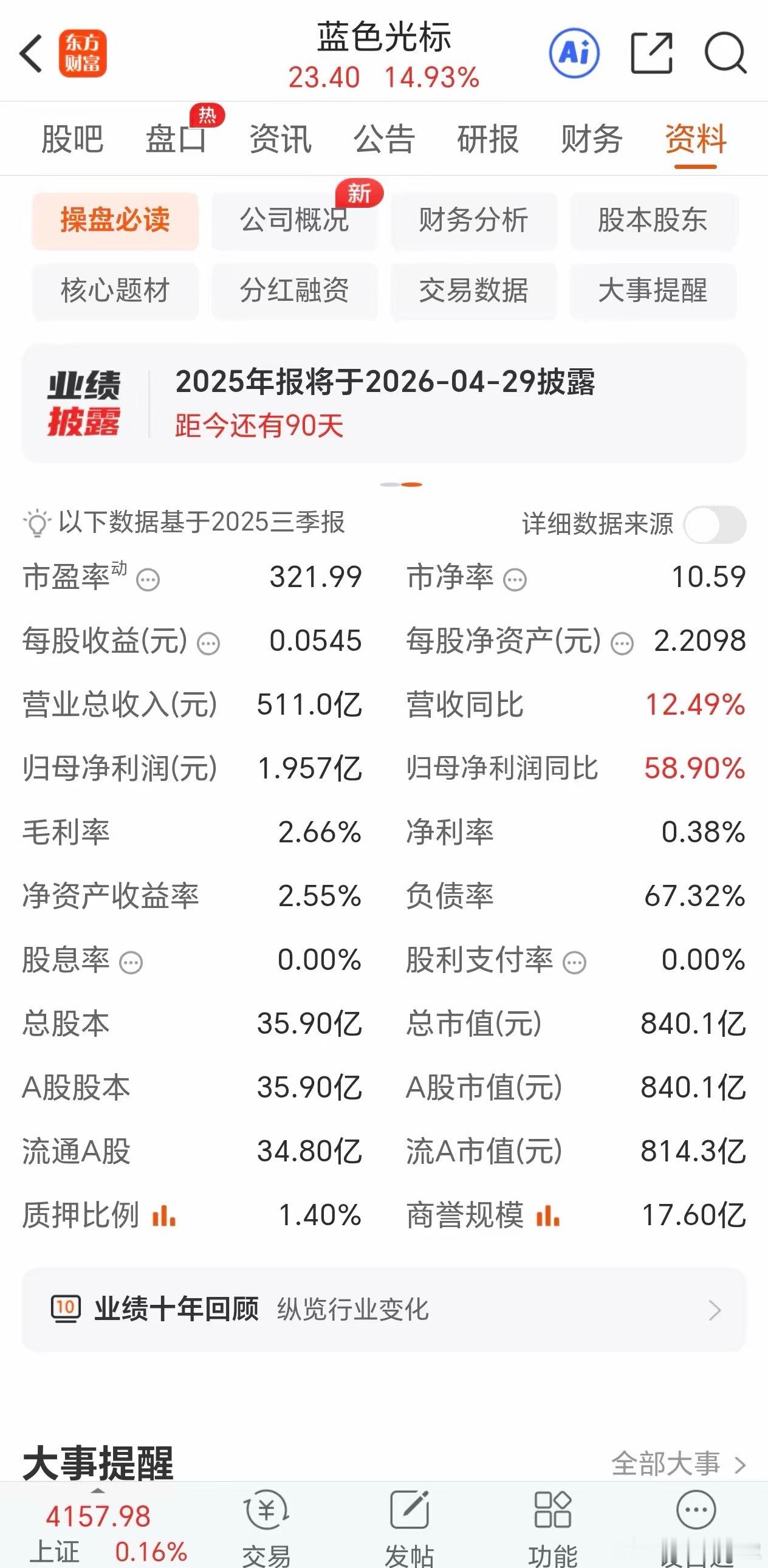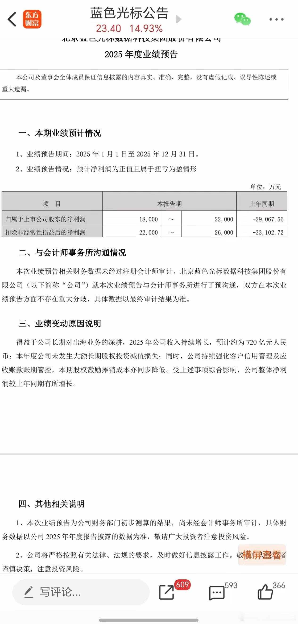 蓝色光标昨晚公布的业绩预告绝还是有问题!前三季报盈利已经是1.96亿,而昨天晚上公布的全年业绩预告是1.8亿到2.2亿。前三季报盈利,当时我记得公司的说法是AI应用引导业务暴增,利润比传统业务高很多。按照公司公布的调用token数量,四季度token调用数量占全年比例达40%,应该四季度大幅盈利才对。可在目前看盈利上并没有体现出来。问题在哪里?
