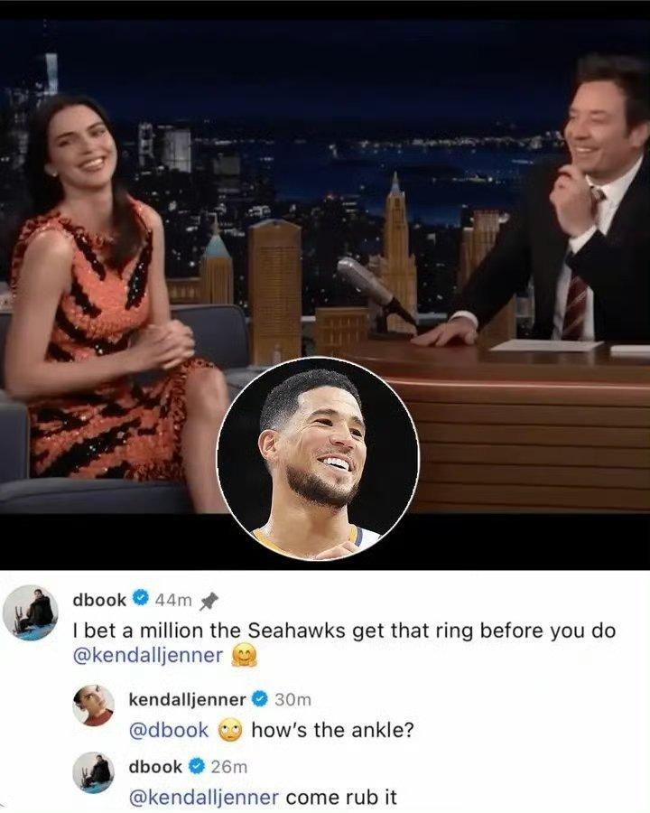 詹娜说自己看好爱国者夺得今年的超级碗,布克评论说:“我赌了一百万,海鹰队会在你之前拿到戒指。”詹娜回:“你的脚踝怎么样了?”布克结果回复的好暧昧:“你来给我揉揉它。”詹娜要重返旧主,签约老东家布克了?nba点赞成金