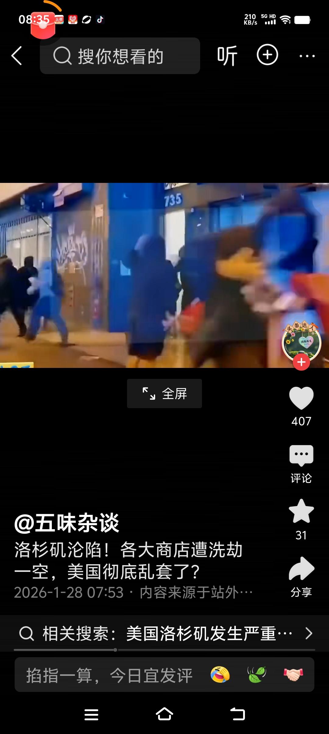 上行下效! 有什么样的领头人, 就有什么样的民众! 在美强寒风暴可怕, 但超过异常天气更恐怖点是, 民众哄抢超市! 这样的事件在美多个城市发生! 总统霸道当黑老大 强抢委内瑞拉, 美民众就直接当强盗,抢超市! 视频看得我惊心动魄, 隔屏都发怵, 可见政府在应对突如其来的异常情况, 还有多么脆弱! 天气异常, 政府调配不当, 民众惊慌强抢! 一句话, 身为中国人我幸福! 我荣光!