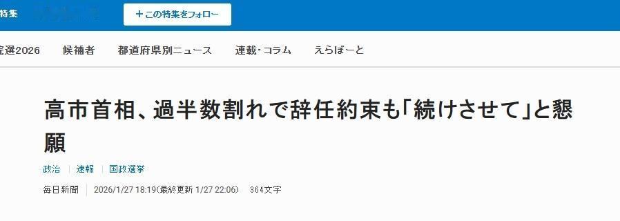 高市早苗又不辞职了? 刚说过“若选情达不到预期,自己将辞职”的高市早苗,又改口了——1月27日,高市早苗在向选民发表讲话时表示,虽然她说过如果执政联盟拿不到多数席位,她会辞职;但如今她的想法变了,即使选举失利,她也希望能继续履行首相职责。 就在1月26号,高市早苗还在党首辩论会上,当着全日本民众的面拍胸脯放狠话,说要是她带领的执政联盟,也就是自民党和维新会,在这次众议院选举里拿不到过半的议席,她二话不说,立马辞去首相职务。 这话听得当时不少人还以为,她是真有底气,要么就是做好了输不起就走人的准备。 结果谁能想到,这话才落地一天,到了1月27号,她就变卦了。当天她在东京秋叶原车站附近,给选民发表讲话的时候,就改口了。 其实她心里的小算盘打得精着呢,根本不是真的想辞职,就是玩了个政治套路。 早在1月23号,她就通过内阁会议,解散了众议院,然后宣布1月27号发布选举公告,2月8号就投票开票,从解散到投票就隔了16天,创下了日本战后最短的选举纪录。她之所以搞这么急的“闪电大选”,就是想钻空子。 最近一段时间,高市早苗的日子不好过,麻烦事儿一堆。首先是国内,日元一个劲儿贬值,物价涨得离谱,老百姓手里的钱越来越不值钱,不少人都抱怨她的政策不行。还有,她还被卷进了政治献金的丑闻里,被人指控违规收企业的捐款,名声越来越差。 对外呢,她老说一些关于台湾的错误言论,咱们国家肯定不答应,就采取了一些反制措施,比如收紧了两用物资的出口管制,这直接冲击到了日本的高端制造业,不少日本企业都怨声载道,找她讨说法。 除此之外,在野党也没闲着,一直围着她的这些问题追问,甚至计划在国会提交内阁不信任案,想把她拉下台。 她搞闪电大选,就是想趁着在野党还没整合好力量,趁着选民还没完全看清她的真面目,赶紧投票,打对手一个措手不及,顺便把自己的位置坐稳。 而她1月26号放狠话辞职,也是套路的一部分,就是想逼自民党的支持者赶紧投她,想告诉那些犹豫的选民,要是不投她,执政联盟输了,她就辞职,到时候日本政坛又要乱,让大家觉得,投她就是稳。 可她没想到,算盘打得再好,现实也不遂人愿。放完狠话之后,民调结果一出来,她就慌了。她的内阁支持率一下子跌了10个百分点,虽然还没崩盘,但那种稳赢的势头已经没了。 还有不少日本民众反对她提前解散众议院,觉得她这么做太自私,就是为了保住自己的权力,不管老百姓的死活,有超过一半的人都不相信她能解决物价上涨的问题。 更关键的是,在野党已经整合好了,立宪民主党和公明党组成了“中道改革联合”,推出了主打民生的政策,很对老百姓的胃口,已经对她的执政联盟形成了不小的冲击。 她一看这形势,知道自己大概率赢不了绝对优势,要是真按之前说的,输了就辞职,那她就彻底没权力了,之前的努力就全白费了。 所以她才急急忙忙改口,说就算选举失利也不辞职。说白了,就是怂了,怕输了之后下台,只能厚着脸皮不认账。她心里清楚,只要能继续留在首相的位置上,哪怕执政联盟席位不够,她也能通过和其他小党派合作、做政治交换,继续掌权,总比彻底下台,被人清算丑闻、骂得体无完肤强。 其实熟悉高市早苗的人都知道,她本来就是个特别强硬、还特别爱耍手段的人。她一直把安倍晋三当成偶像,总想复刻那种强势的统治风格,为了保住权力,什么话都敢说,什么套路都敢玩。这次改口,也不是第一次了,之前她就经常说一套做一套,只不过这次做得太明显,太打脸。 现在日本不少人都在批评她,就连庆应义塾大学的名誉教授都站出来说,她这是滥用解散国会的权力,把本该讨论民生、讨论年度预算的国会,当成了她个人争夺权力的赌场。 而且因为她强行解散众议院,2026年的财政预算案都没法正常审议,等到3月新国会运转,日本很可能出现预算真空,地方的民生援助、防灾减灾项目都会停滞,最后吃亏的还是老百姓。 说到底,高市早苗的这些操作,跟什么责任、什么民生都没关系,全都是为了她自己的权力。她放狠话辞职,是为了拉选票;改口不辞职,是怕输了下台。从头到尾,她都在拿日本的国家利益、老百姓的死活当筹码,玩一场关乎自己权力的豪赌。 至于最后她能不能保住首相的位置,还要等2月8号的投票结果。但不管结果怎么样,她这次出尔反尔的操作,已经彻底暴露了她的真面目,就算最后赢了,也很难再赢得老百姓的信任。毕竟,一个连自己说的话都不算数的政客,怎么可能真心为老百姓办事、为国家负责呢?