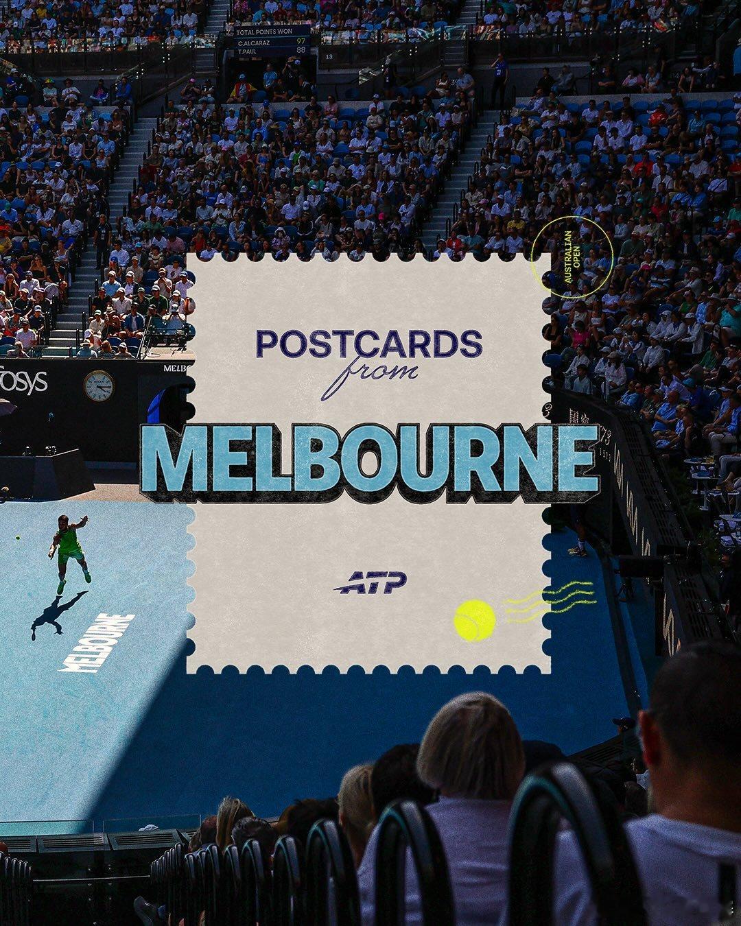 澳网男单半决赛日 🙌一些来自墨尔本的明信片,请注意查收 🎑网来不息ATP德约科维奇vs辛纳阿尔卡拉斯vs兹维列夫