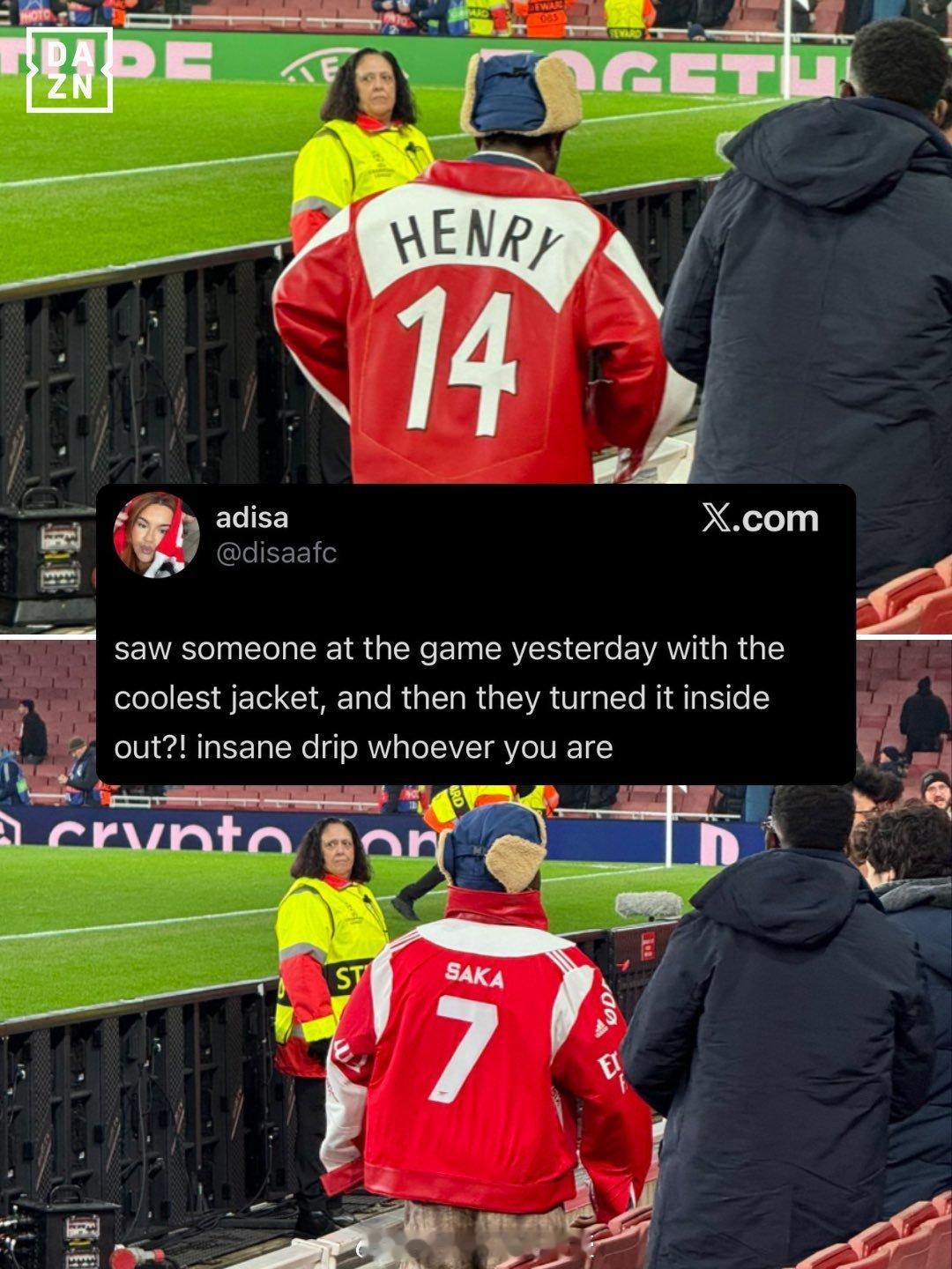 这位阿森纳球迷被拍到身穿一件超酷的皮夹克出现在酋长球场 阿森纳著名教授