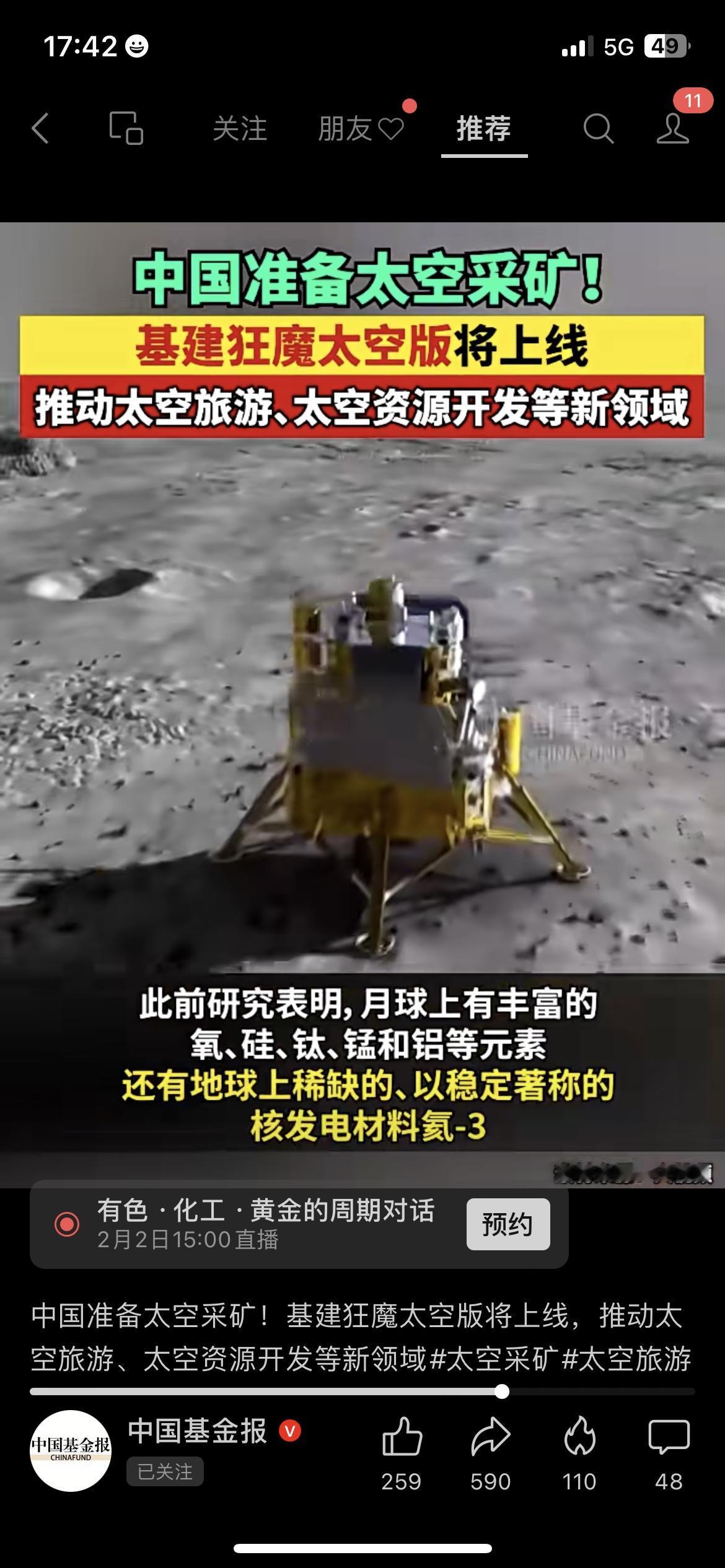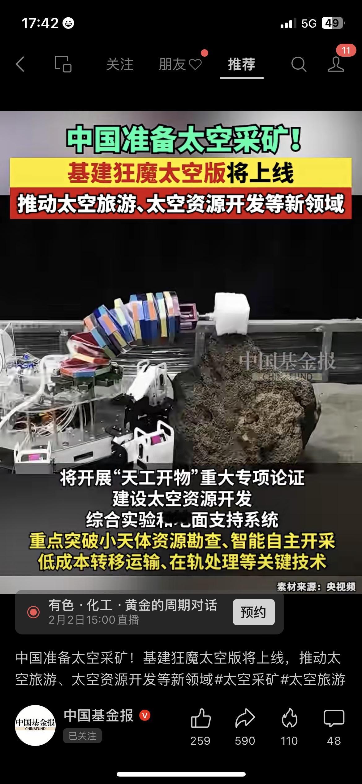 🚀基建狂魔上天了!中国要去太空采矿! 国家要启动“天工开物”专项,搞太空资源开发,目标是月球上的氦-3和稀有金属。我老家做光伏的大伯说,这技术突破了,以后光伏材料成本能降不少,咱们用电也能更便宜。 太空采矿不是科幻,是普通人未来能用上的实惠。 你觉得太空采矿会改变咱们的生活吗? 国家政策 太空采矿
