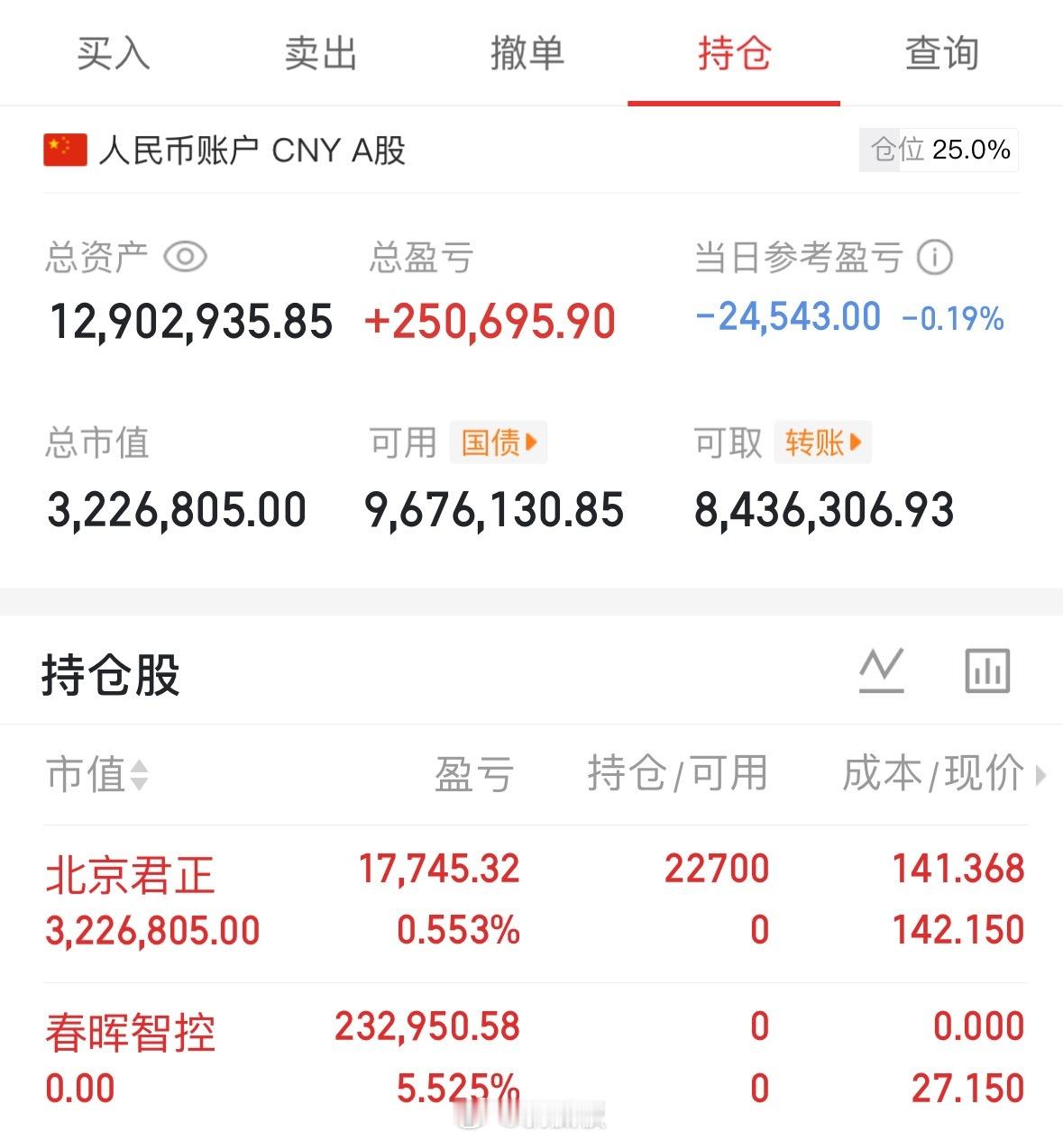 1月30日 早盘1000万勇闯大A记 !目标2026赚它一个亿!!第(27)天今日情况:-2万持:$北京君正 sz300223$ 机遇与挑战并存,希望能创造奇迹,更到数倍那天。特别声明:本文仅是个人观点及操作不构成投资建议,仅供参考