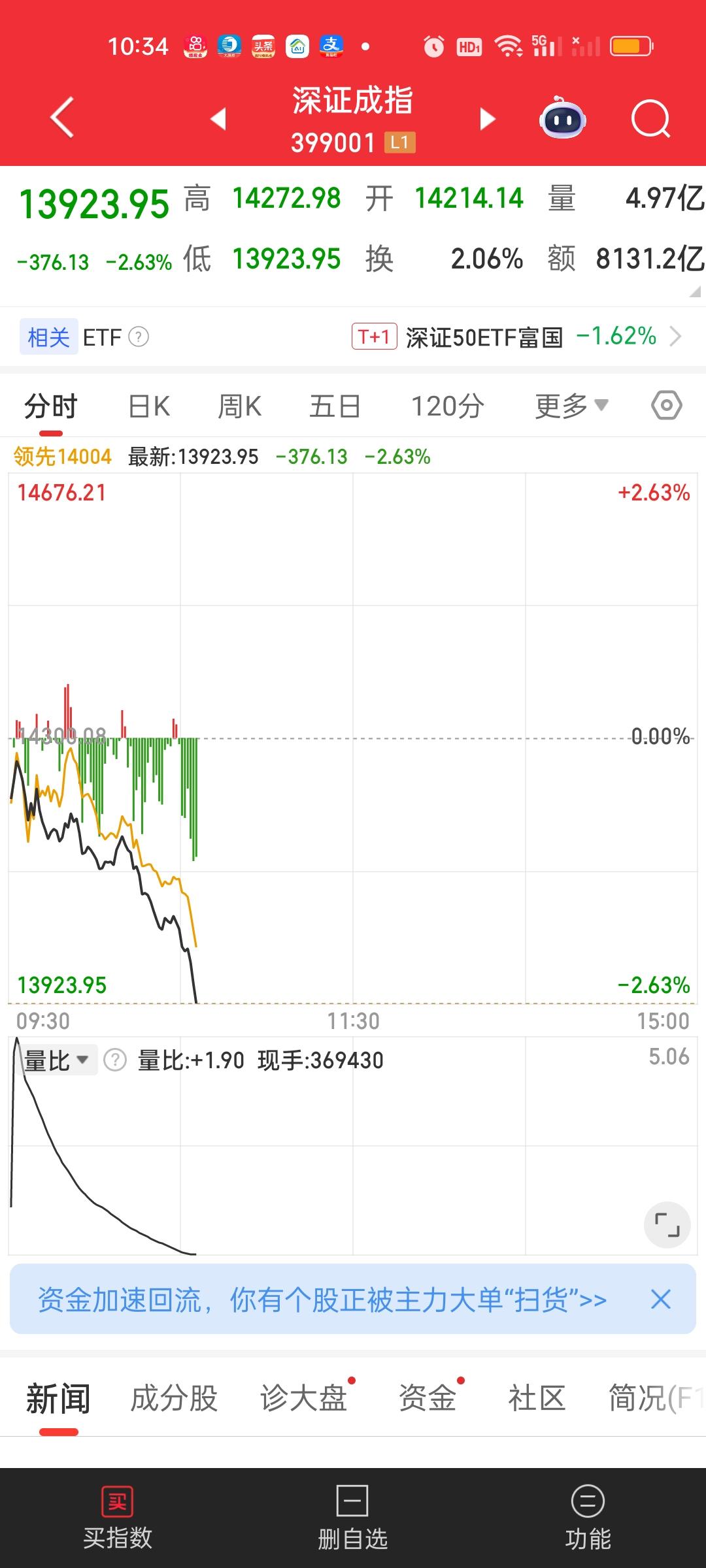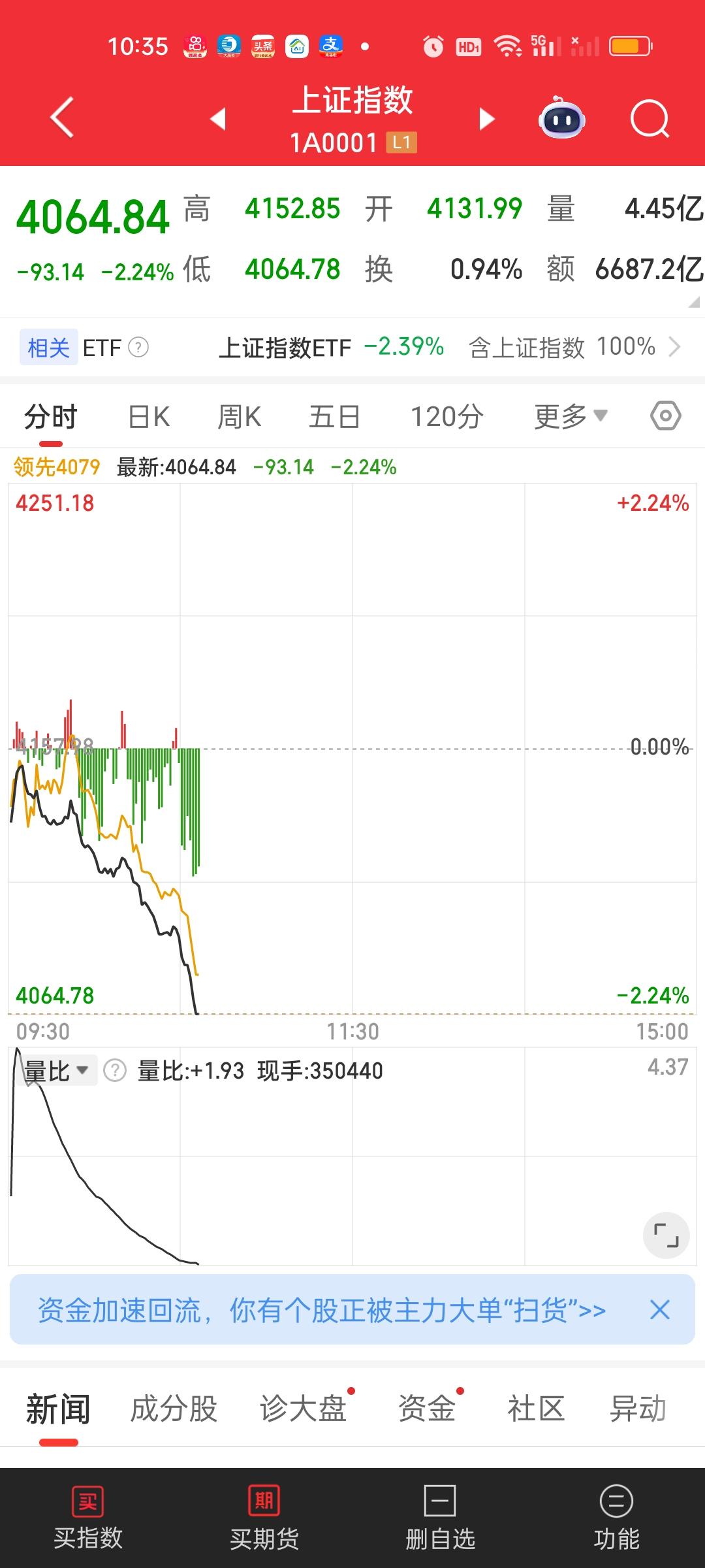 其实你心里很清楚百点爆杀迟早会来。你只是不愿意相信会是今天。今天这个下杀是非常残忍非常猛烈的,短时间内接近100个点的急速下杀,而且成交量是明显放大的,大盘资金在短时间内有明显的加速疯狂流出。这里应该有不少人割肉了。