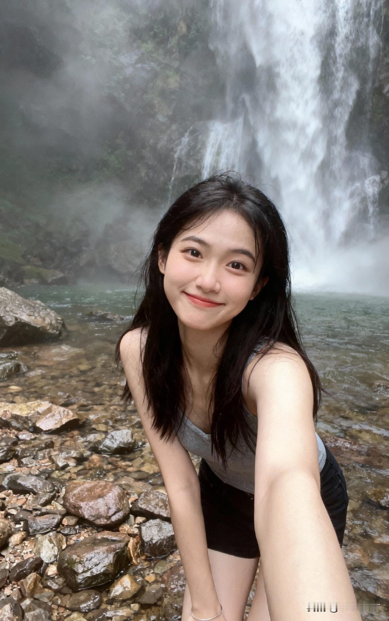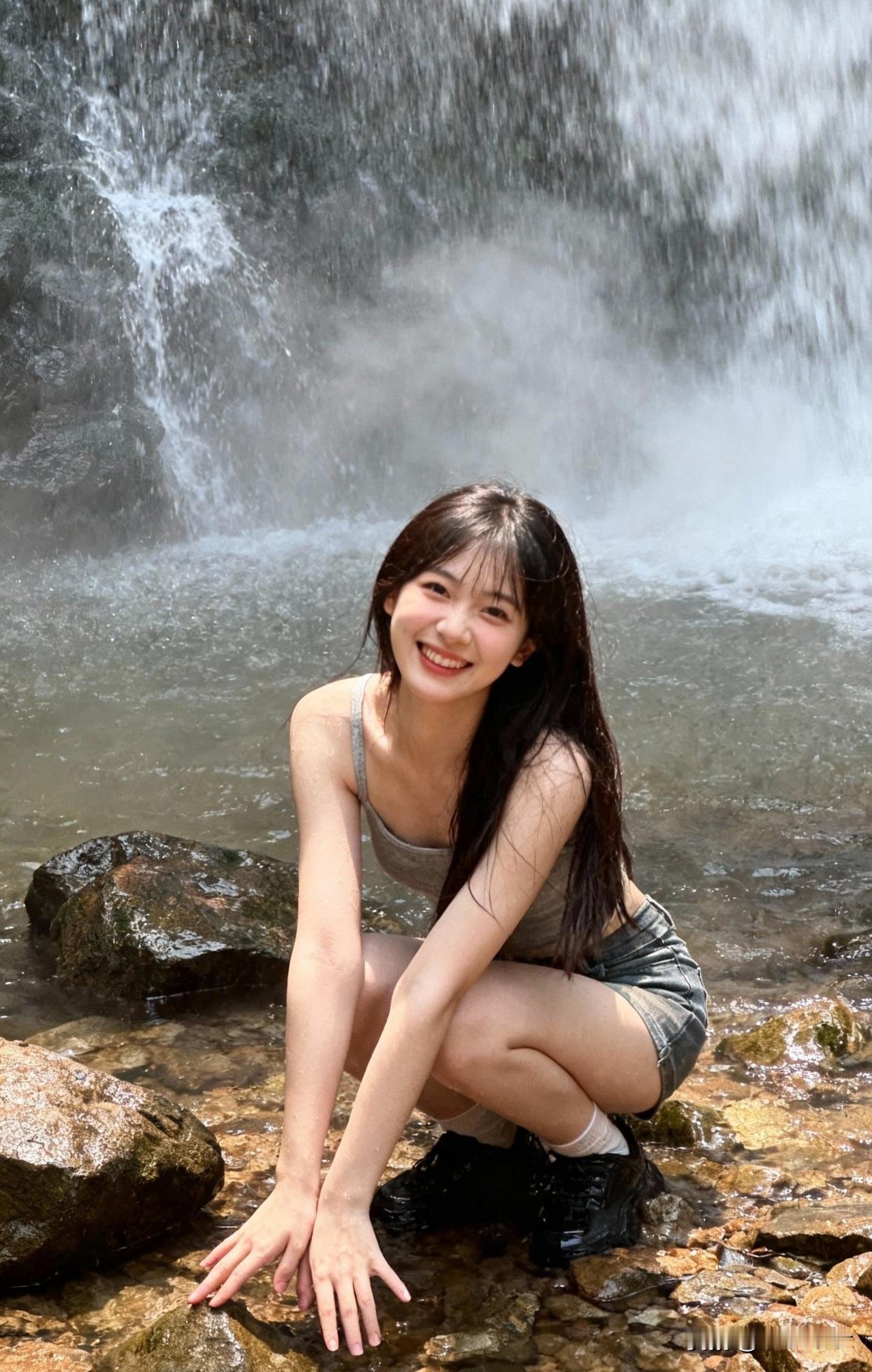 在瀑布下嬉戏,感受大自然的清凉与快乐!💦🌿😊