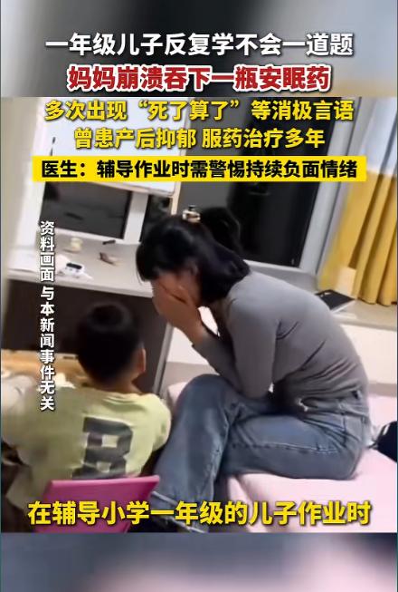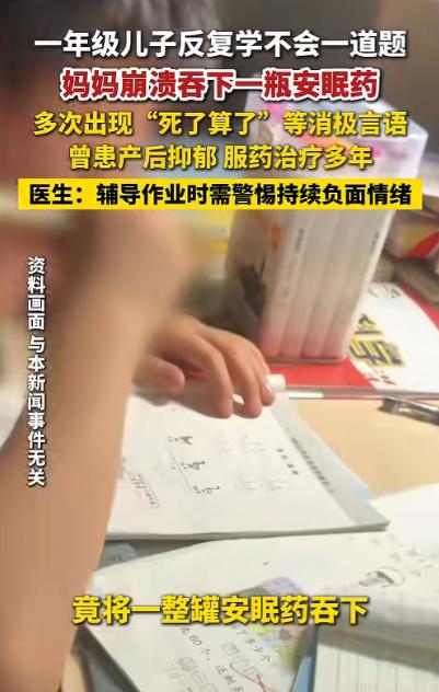 “悲剧还是发生了!”1月26日,浙江杭州,一女子辅导儿子作业时,因一道题反复讲了许多遍仍不会,情绪突然失控,竟直接吞下一整罐安眠药,随后昏迷不醒,家人发现后急忙送去医院,费了好一番功夫才脱离危险。网友:这得有多气人啊! 1 月 26 日的杭州,37 岁的妈妈坐在书桌旁,正陪着刚上一年级的儿子写作业,这本是她辞去外贸工作专心陪读后,每天都会上演的日常。 桌上摊着的练习册里,只是一道再简单不过的算术题,可就是这道题,她弯着腰、放低语速,一遍又一遍地拆解讲解,从掰着手指教数的组合,到画着横线讲加减的逻辑。 前前后后说了八遍,孩子却始终睁着茫然的眼睛,眼神时不时飘向旁边的橡皮,抠抠捏捏的小动作不停,第八次被问到答案时,依旧脱口而出一个错误的数字。 那一刻,屋子里的安静压过了所有声音,这位妈妈没有像往常一样着急斥责,只是默默从椅子上站了起来,走到抽屉边拿出了那罐一直放在家里的安眠药,没有丝毫犹豫地全部吞了下去。 没人知道在那沉默的几秒里,她的心里翻涌着多少情绪,只知道在此之前,这样崩溃的瞬间已经在这段时间里反复上演。 孩子上小学后,她把所有的精力和期待都放在了孩子的学习上,哪怕杭州早就出台了作业管理的相关方案,明确小学一二年级不留书面家庭作业,周边的家长们却依旧在私下里给孩子加练。 升学的压力像一层看不见的网,让她不敢有丝毫松懈,自己买了三本练习册,每天陪着孩子辅导到晚上十点多,逐题检查、逐字批改,连头发都熬得一把把掉。 孩子的老师也曾跟她反馈,孩子上课可能存在注意力不集中的问题,可她没想着带孩子去做专业检查,只觉得是孩子学习不用心,反而变本加厉地增加作业量,让本就紧绷的亲子关系,又多了一层沉重的负担。 而这份紧绷,早已不止出现在辅导作业的时刻。家人后来回忆,这位妈妈最近半个月的状态一直很差,临近期末,孩子的学习状态不见起色,她的焦虑也跟着越积越重,每天只睡四个小时,饭也吃得寥寥无几,半个月的时间体重掉了八斤。 常常坐在沙发上发呆,嘴里时不时冒出 “撑不下去了”“死了算了” 这样的话,家人只当是她辅导作业太累了随口抱怨,没料到这些消极的言语背后,是她早已撑到极限的心理状态。 更让人揪心的是,这位妈妈并非突然出现的情绪问题,2018 年生完孩子后,她就被确诊了产后抑郁,还伴随有焦虑症,这八年来一直靠着药物维持治疗。 孩子上幼儿园的那两年,没有繁重的学业压力,她的情绪还算平稳,可孩子步入小学,教育的压力叠加着原本就未痊愈的心理问题,让她的情绪调节能力越来越弱,一点点的挫败感,都能被无限放大。 药效发作得很快,十几分钟后,她就因为药物反应陷入了昏迷,直直地倒在客厅的地毯上,空了的药罐滚在脚边。九点多加班回家的孩子爸爸推开门,看到的就是这样一幕。 孩子站在旁边吓得哇哇大哭,他瞬间慌了神,连鞋都没换,立刻拨打了 120,抱着妻子往楼下跑,一路上不停喊着她的名字。 送到医院的急诊科时,她的意识已经模糊,护人员立刻开启了紧急抢救,洗胃、静脉补液、监测生命体征,一系列的抢救措施忙前忙后数个小时,才终于把她从死神手里拉了回来,脱离了生命危险的她,被转到了病房继续观察,直到现在,情绪才慢慢趋于平稳。 这位妈妈的极端行为,并非单纯的一时冲动,而是长期的抑郁病史,让她的情绪调节阈值变得极低,辅导作业带来的挫败感,只是一个触发的导火索。 对于本身就有心理疾病的人来说,过度承担教育压力,很容易让负面情绪不断堆积,最终形成恶性循环。 而在日常的亲子辅导中,很多家长都会出现情绪波动,这本身是正常的压力反应,但如果这种负面情绪变得持续且高强度,甚至蔓延到了工作和社交的其他方面,就需要格外警惕了。 医生也特别提到,小学一年级的孩子,正处于认知发展的关键阶段,注意力不集中、对简单的知识点理解缓慢,很多时候并不是孩子故意不听话、学习不用心,反而可能是存在注意力缺陷多动障碍等问题。 家长一味地硬逼、斥责,不仅解决不了问题,还会让孩子产生厌学情绪,也会让自己的情绪陷入负面循环。 在陪伴孩子成长的路上,学会关注自己的情绪,也学会理解孩子的成长节奏,才是对自己和孩子最好的负责。 而对于每一个家长来说,在辅导作业的焦灼时刻,多一份对自己情绪的觉察,少一份对孩子的过度期待,或许就能避免很多不必要的情绪内耗。 对于这件事,您有什么想说的吗?欢迎评论区留言讨论。 信源:杭州网2026-01-29——《 太崩溃,一位妈妈吞下一整瓶安眠药!孩子达不到自己预期让她倍感焦虑和挫败》